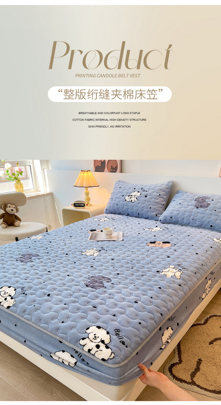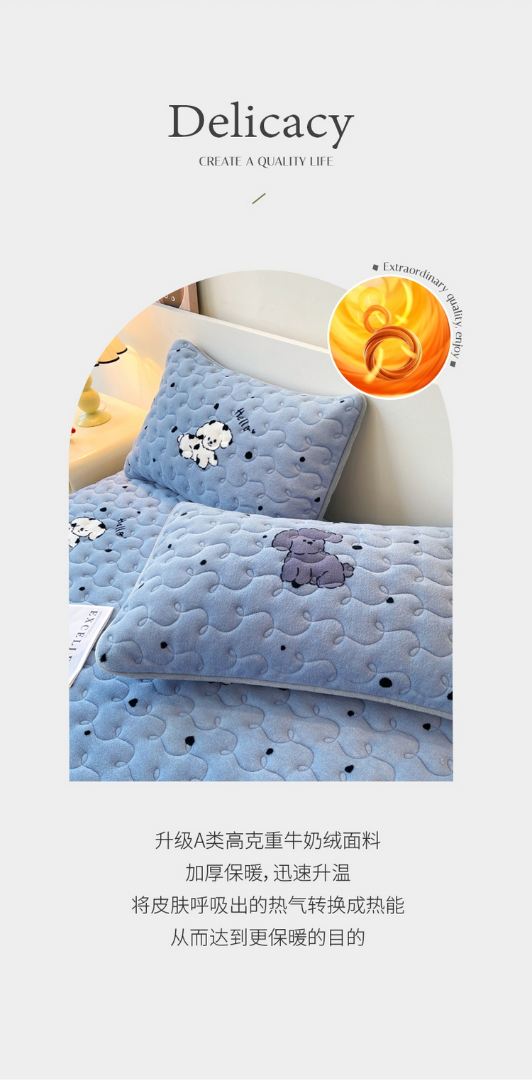 2024秋冬A类牛奶绒加厚夹棉床笠+牛奶绒被套四件套汪星人
