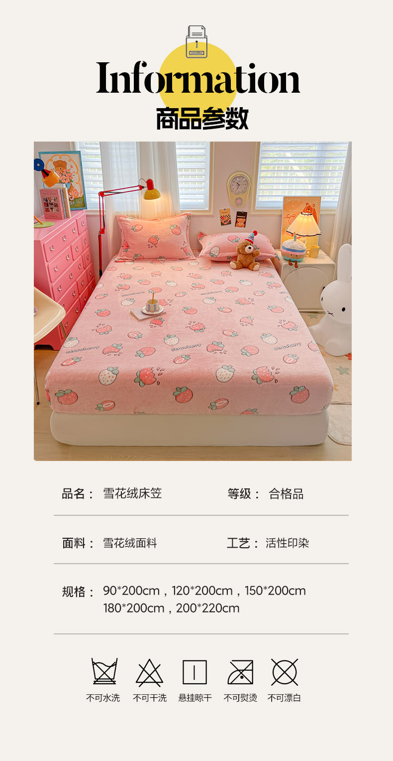 • 91家纺网 家纺一手货源 找家纺 韩巢家纺 2024新款加厚雪花绒卡通印花保暖床笠三件套 奶油草莓 91家纺网 家纺一手货源 找家纺 韩巢家纺 2024新款加厚雪花绒卡通印花保暖床笠三件套 奶油草莓