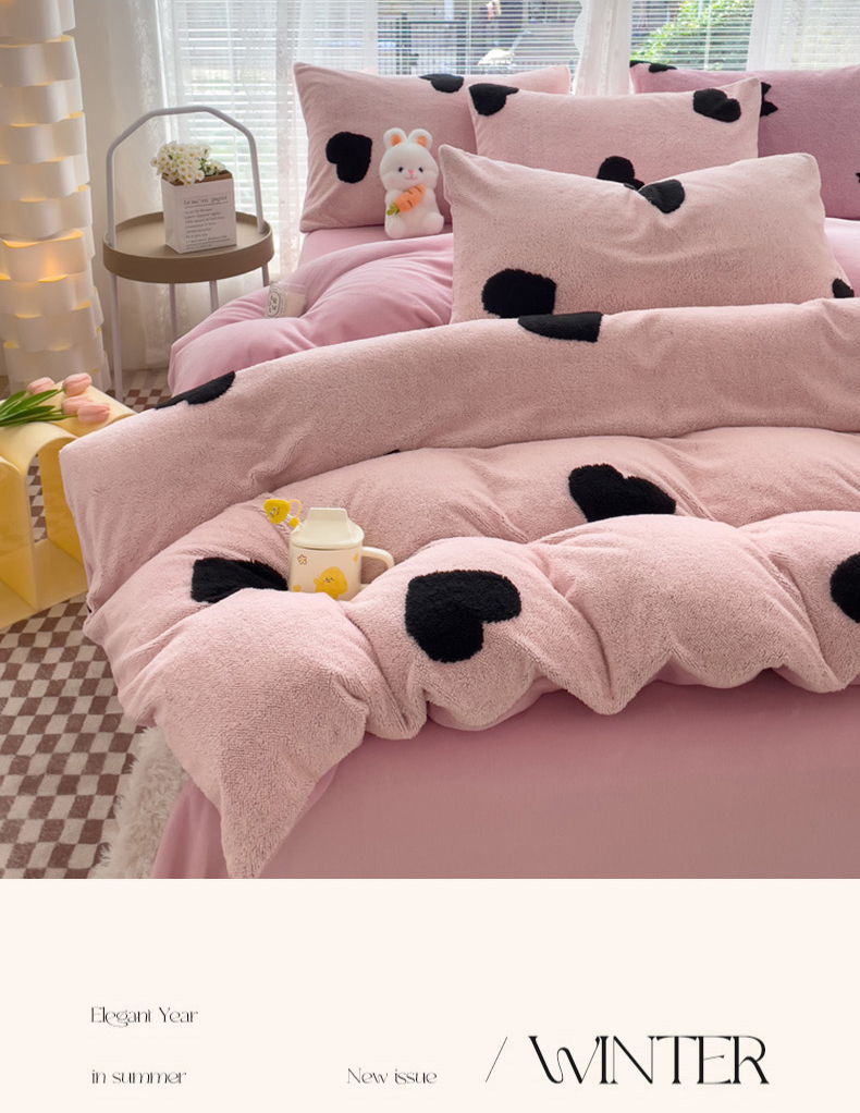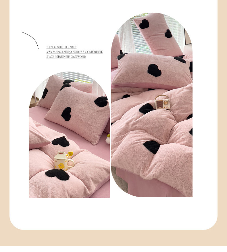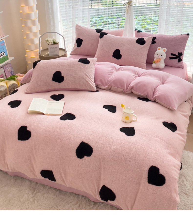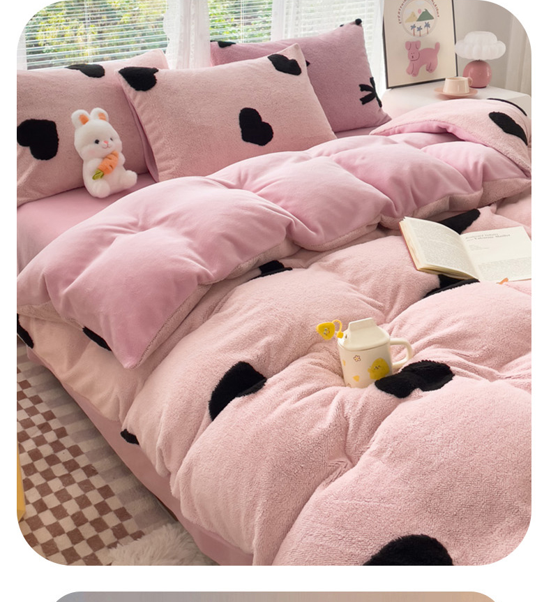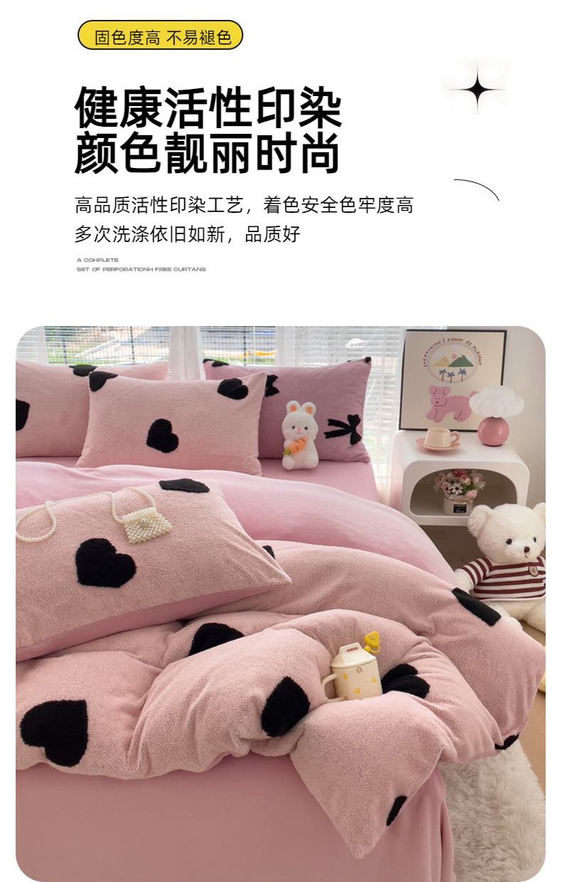 商品名称:蝶帕家纺 2024新款阳离子提花舒棉绒四件套 心动-粉