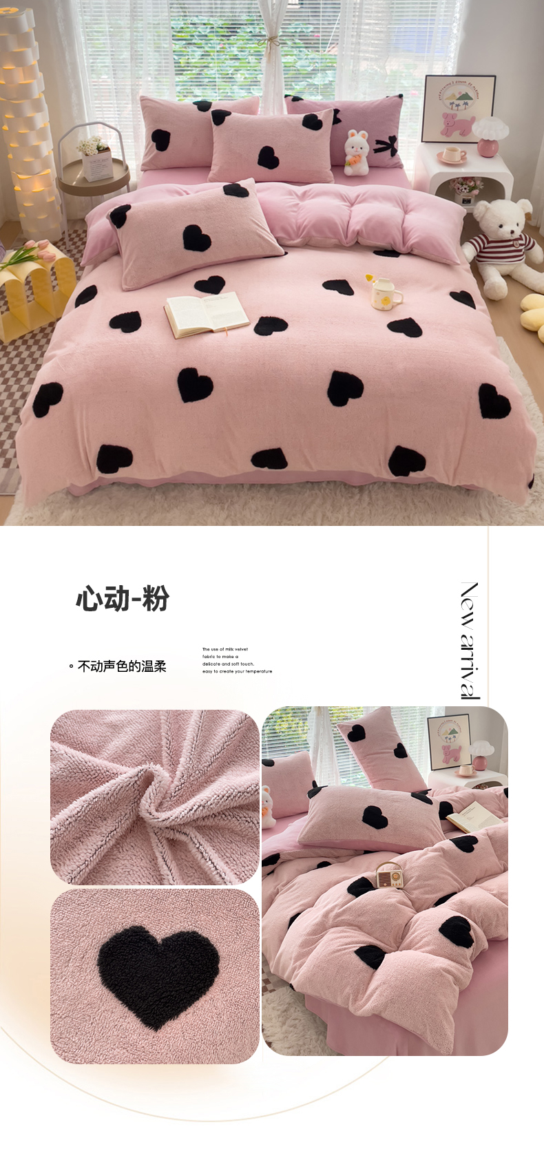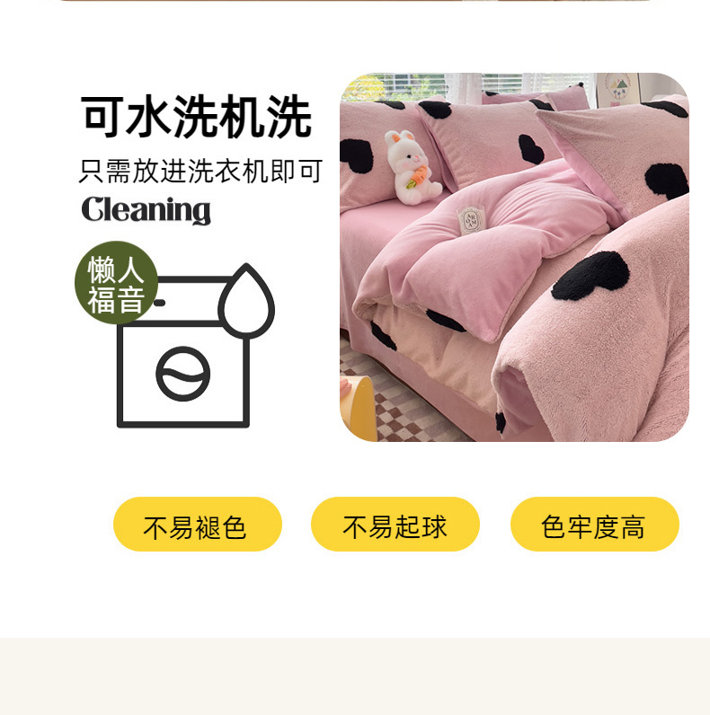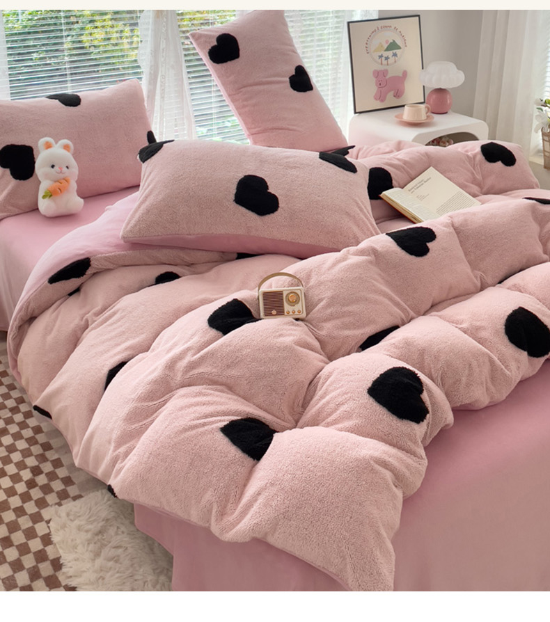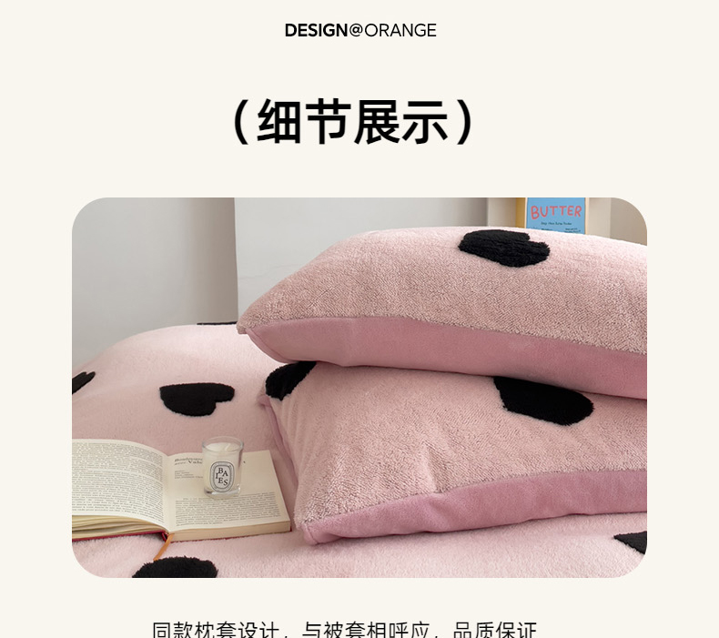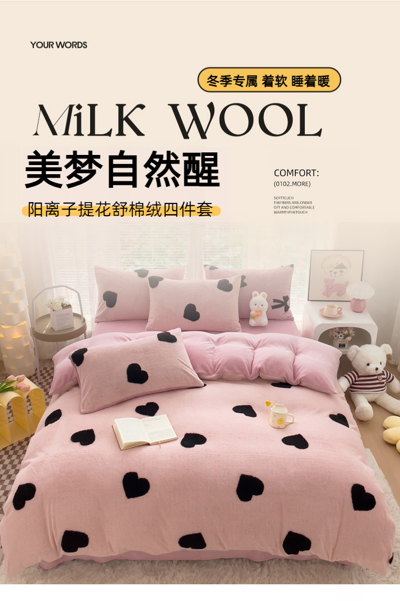 商品名称:蝶帕家纺 2024新款阳离子提花舒棉绒四件套 心动-粉