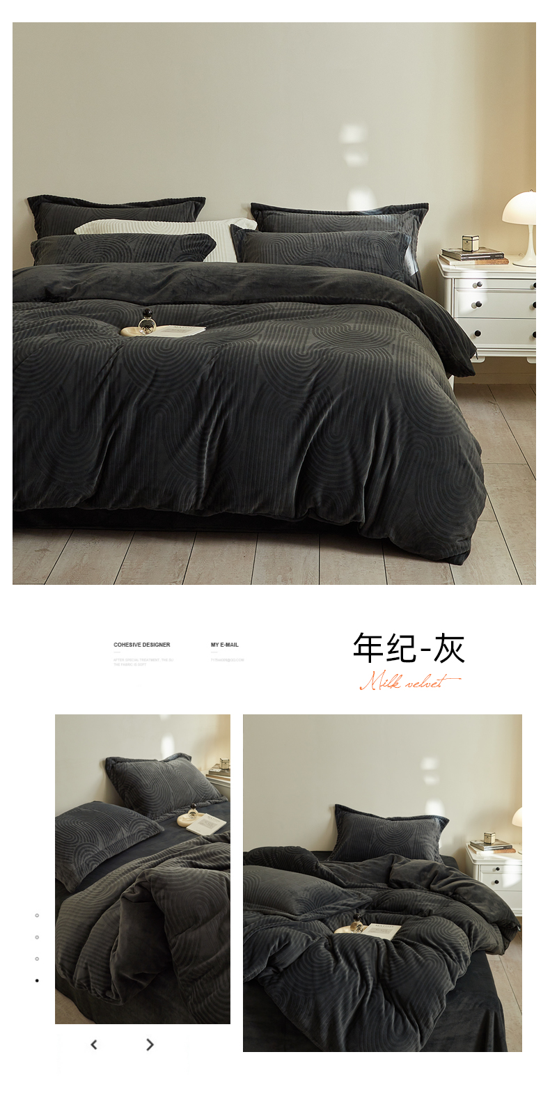 安莱生活 2024新款牛奶绒提花烂花年纪系列四件套-风格二 年纪-灰