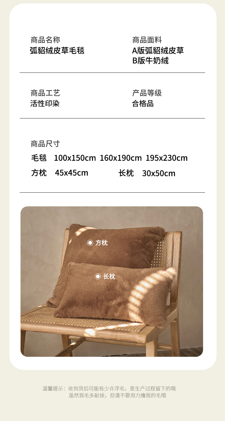 商品名称:安莱生活 2024新款弧貂绒皮草毛毯 菲尔罗
