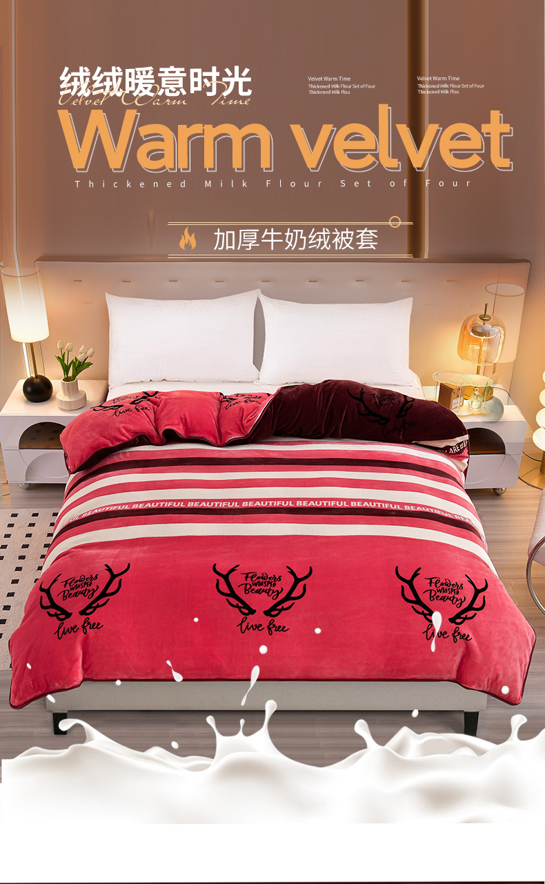 绒品荟家纺 2025新款牛奶绒四件套 心相随,心相随
