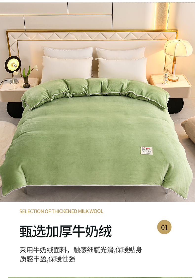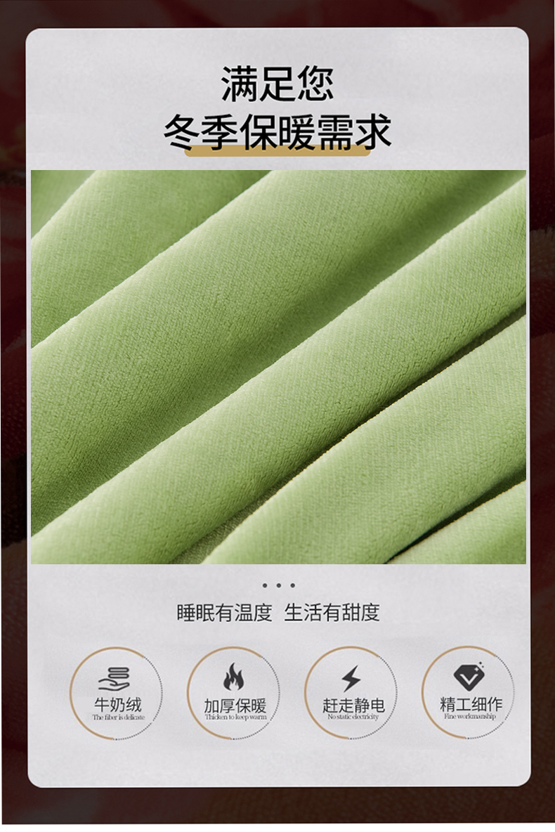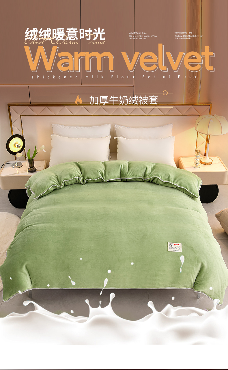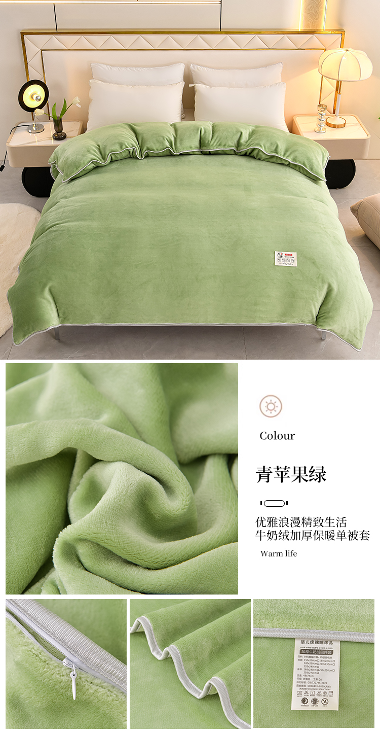 商品名称:绒品荟家纺 2025新款加厚牛奶绒单被套金貂绒法莱绒冬季法兰绒高克重被罩 青苹果绿