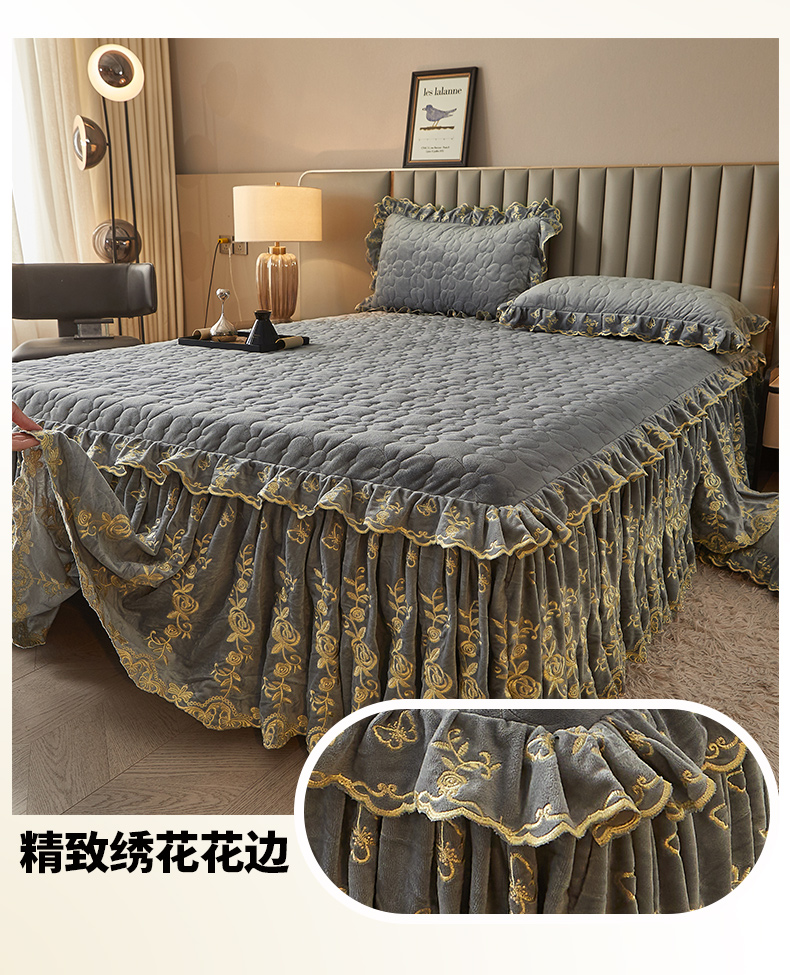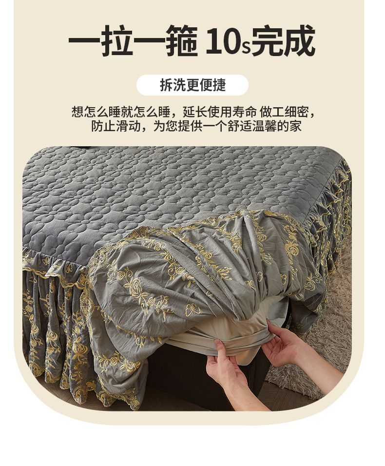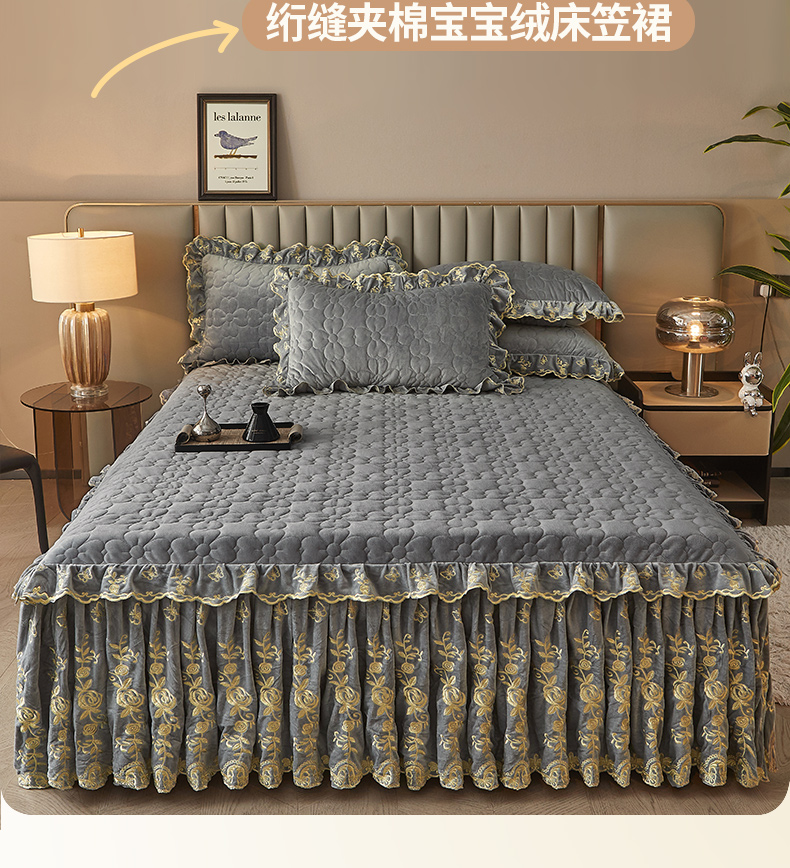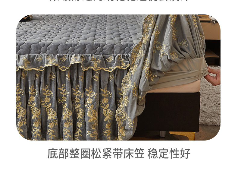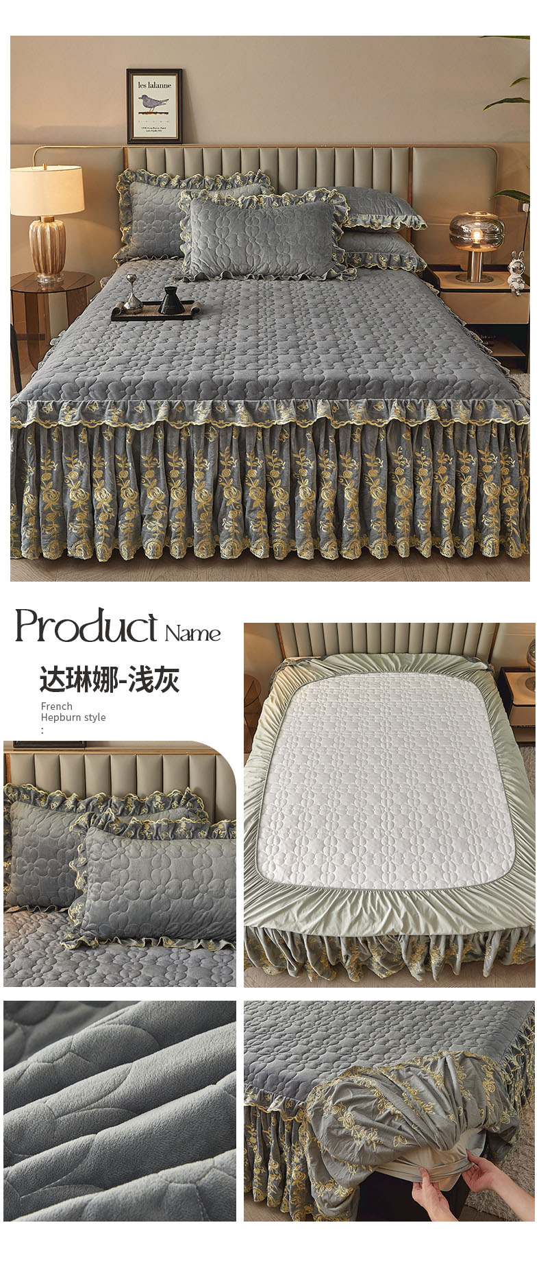 商品名称:恋尚 2024新款宝宝绒绣花花边床笠式床裙-达琳娜 达琳娜-浅灰