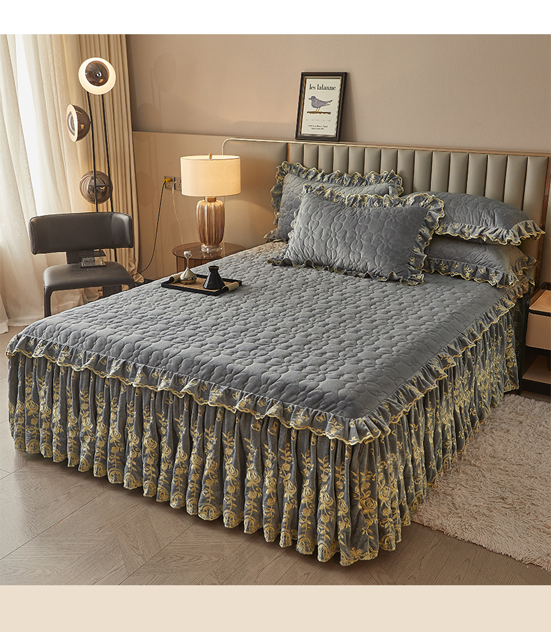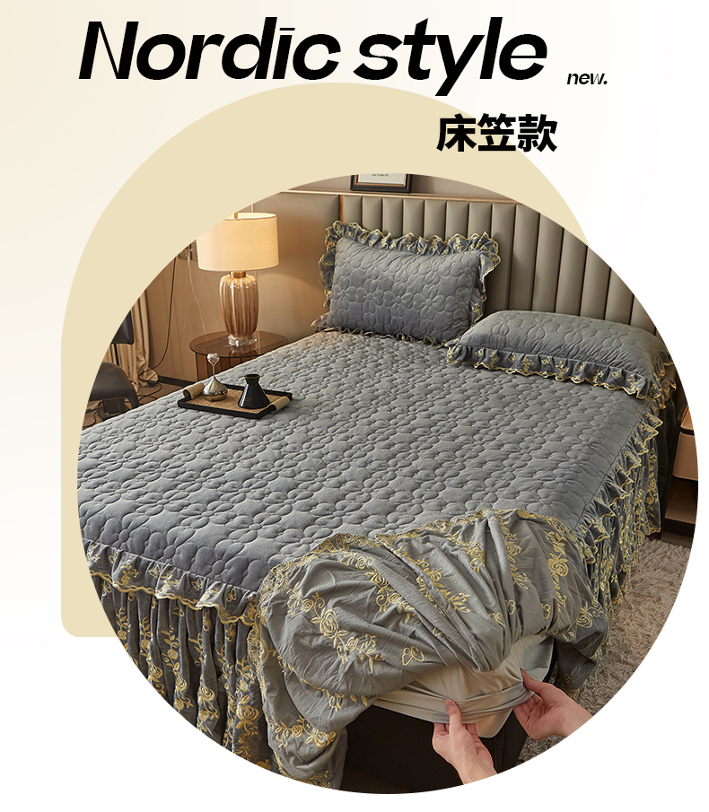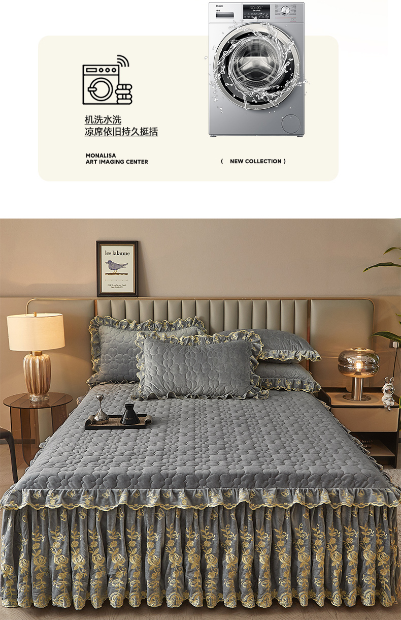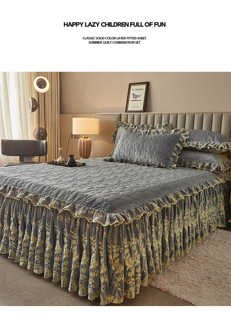 商品名称:恋尚 2024新款宝宝绒绣花花边床笠式床裙-达琳娜 达琳娜-浅灰