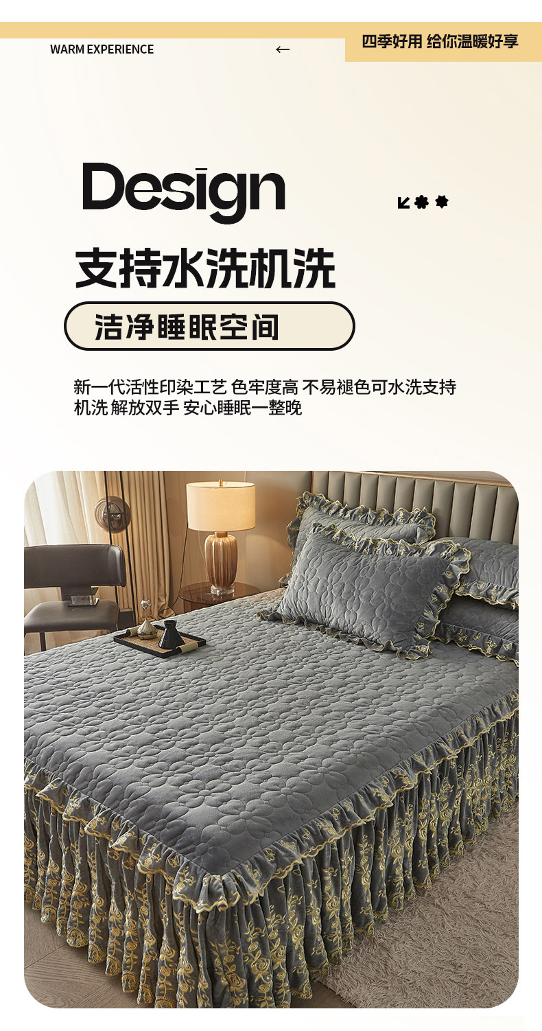 (总)恋尚 2025新款加厚牛奶绒保暖床笠式床裙单品床裙床裙单件-莫奈花园(床裙控价130起),莫奈花园-蜜桃粉,莫奈花园-奶油白,莫奈花园-清新粉,莫奈花园-香芋紫,莫奈花园-椰蓉灰