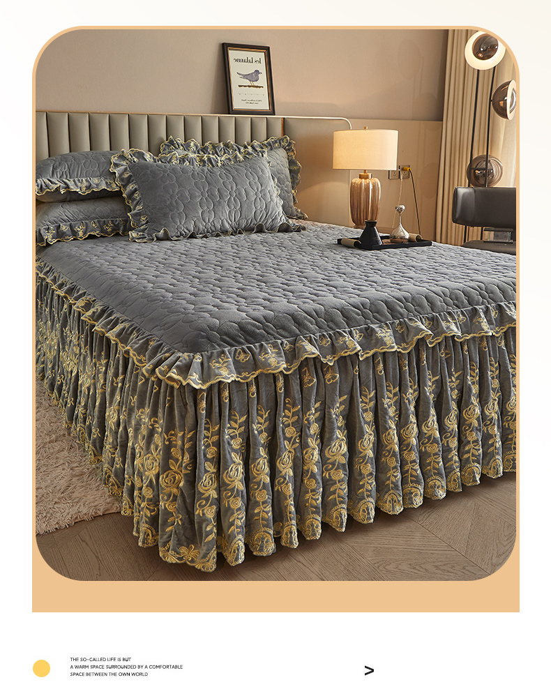 恋尚 2024新款宝宝绒绣花花边床笠式床裙-达琳娜 达琳娜-浅灰