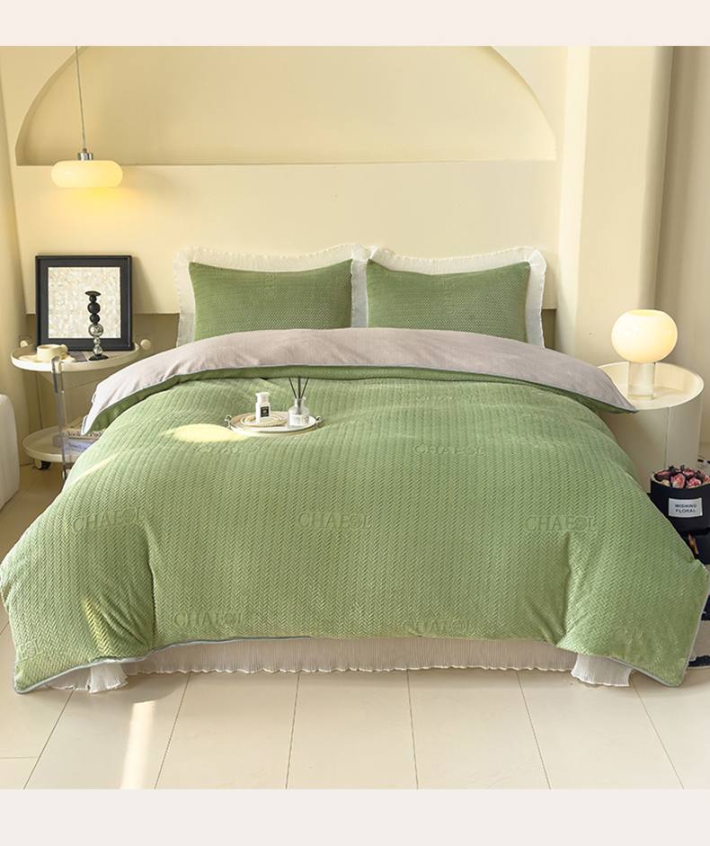 商品名称:冬然家纺 2024新款雕花绒床盖系列 大麦穗-绿