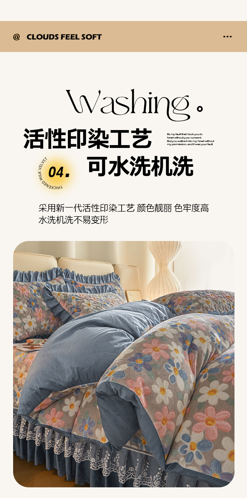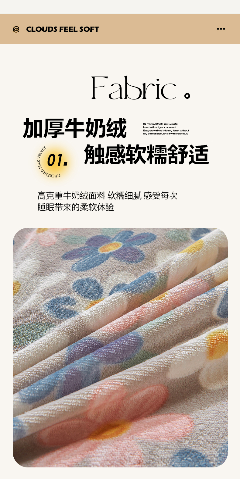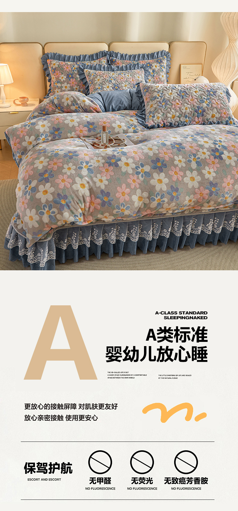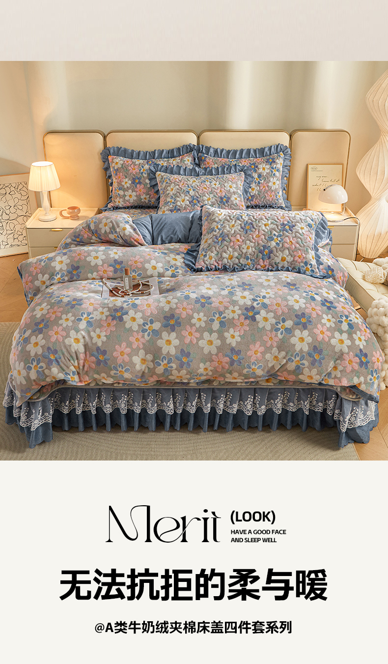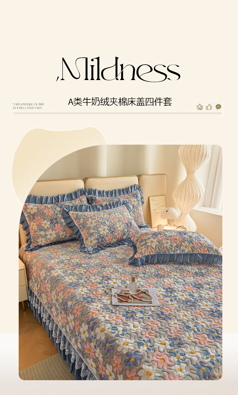 艾裙海 2025新款高克重加厚保暖A类牛奶绒夹棉床盖系列四件套 美丽花园