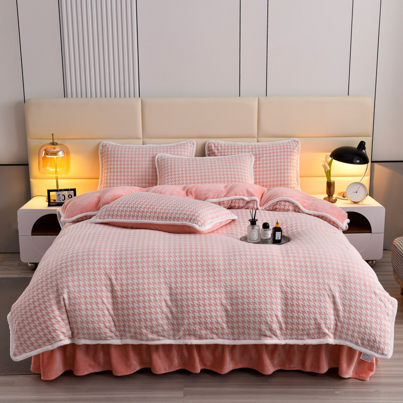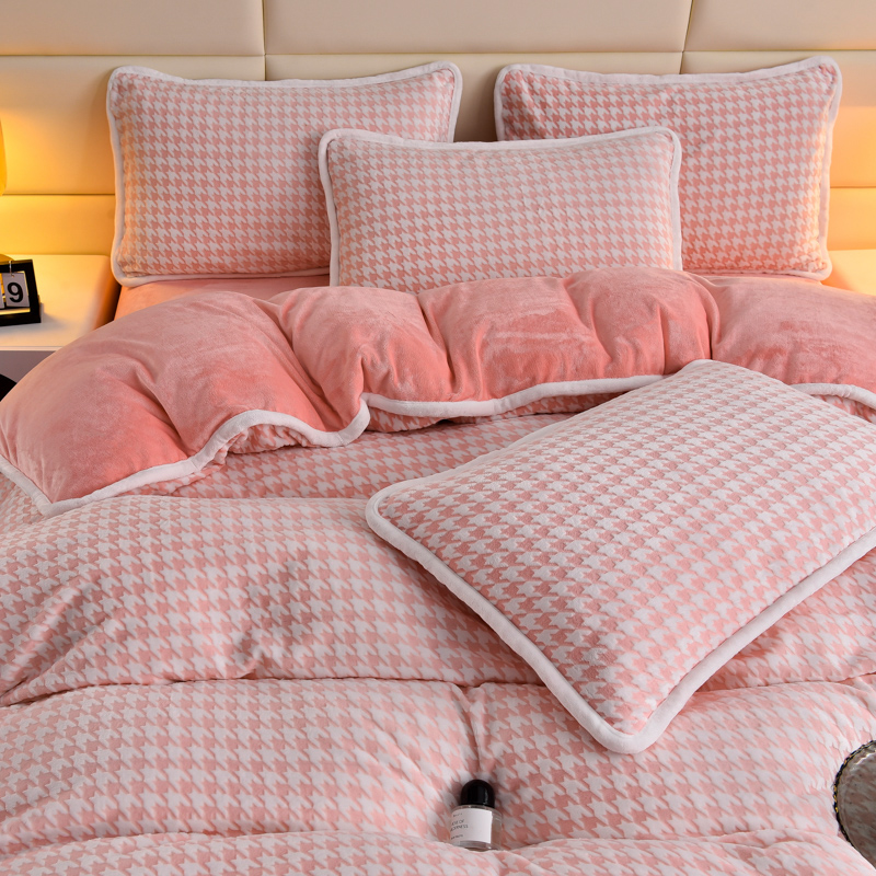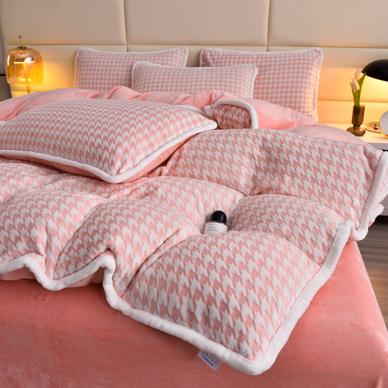 诺梵 2025新款8斤立体雕花牛奶绒四件套_控价标准高于139,加大高于149 千鸟格-粉
