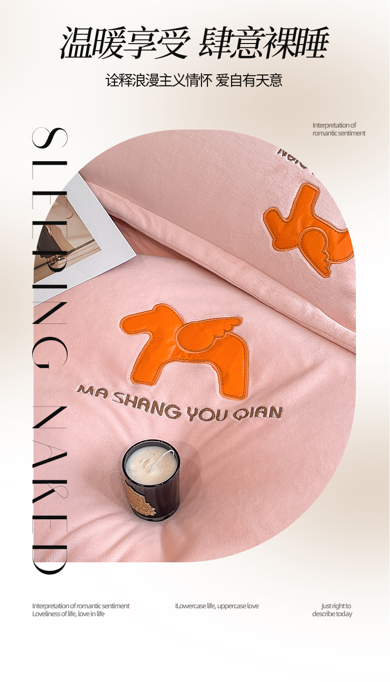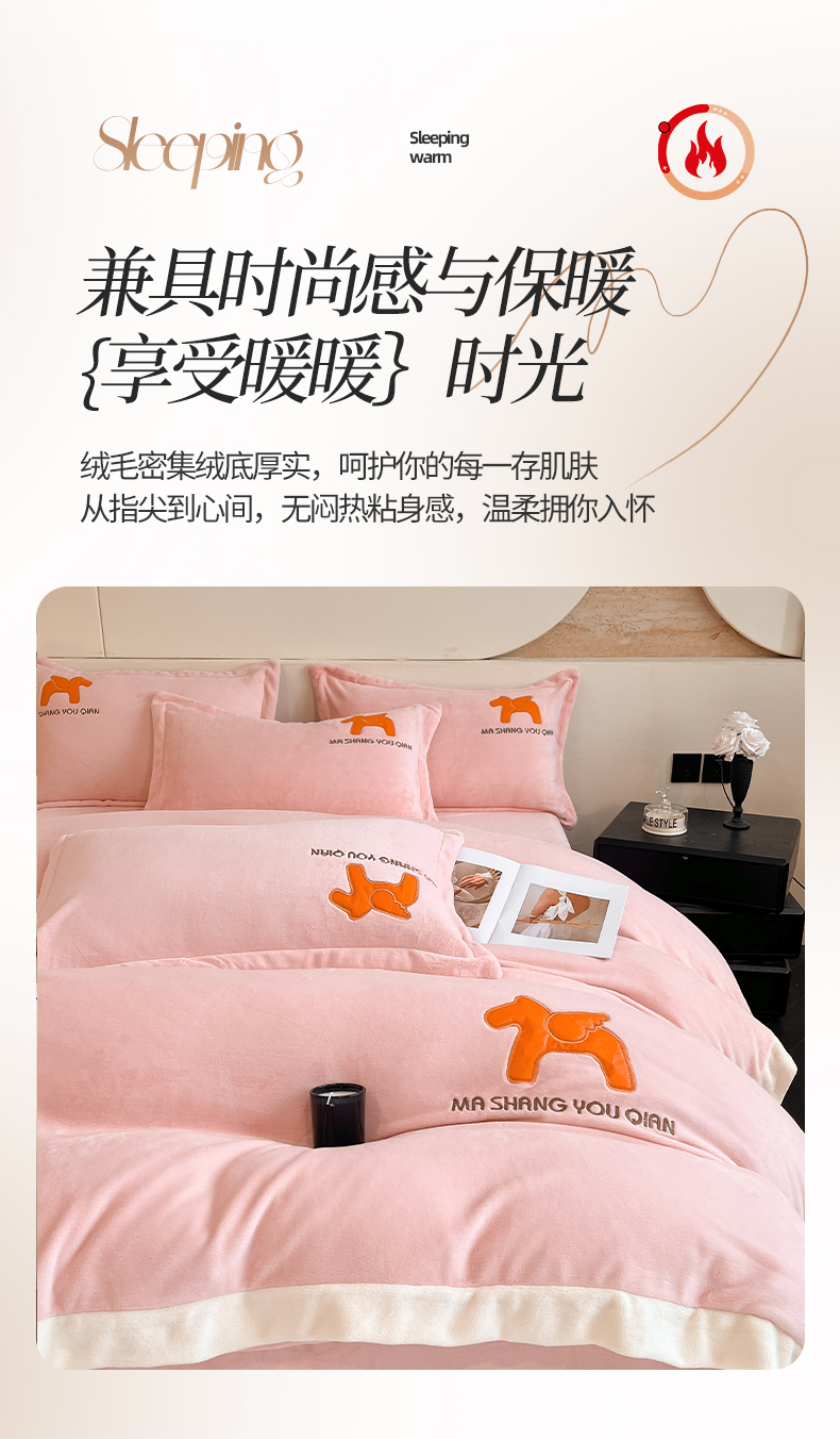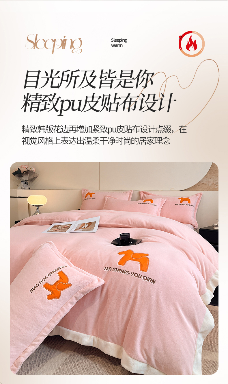 爱家(原缔乐家纺) 2024新款A类牛奶绒pu皮贴布四件套-艾玛斯 艾玛斯-公主粉