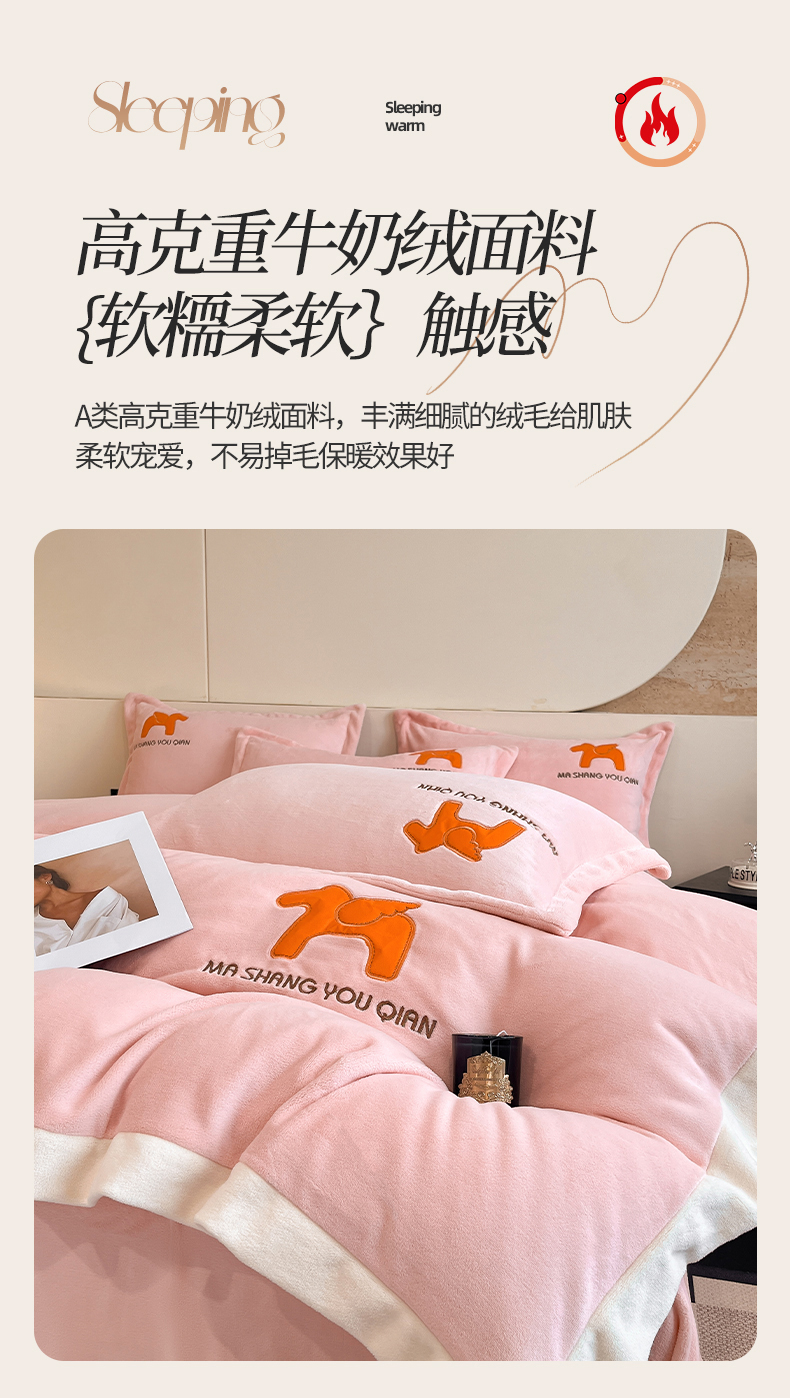 (总)爱家(原缔乐家纺) 2025新款A类高克重牛奶绒立体花刺绣四件套-花蜜,花蜜-公主粉,花蜜-天空兰,花蜜-奶昔白,花蜜-梦幻紫