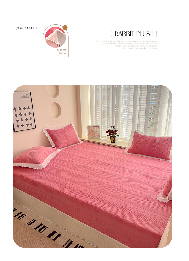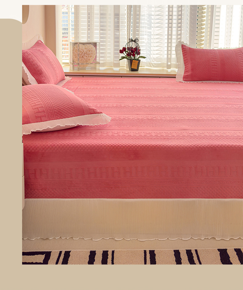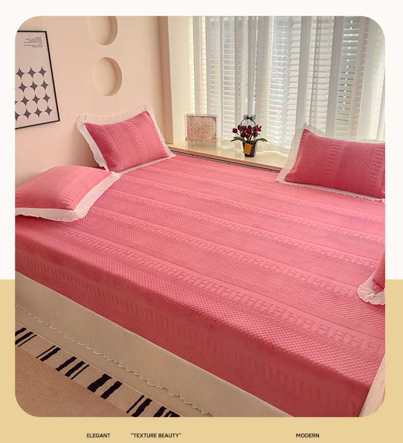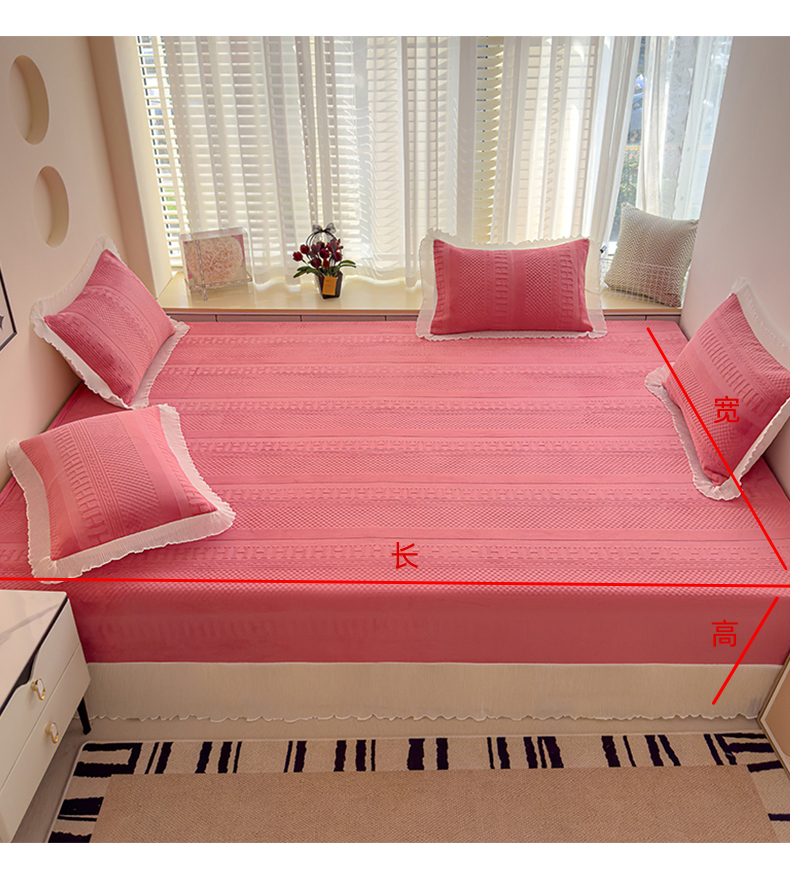 冬然家纺 2024新款雕花绒榻榻米床盖玫瑰粉