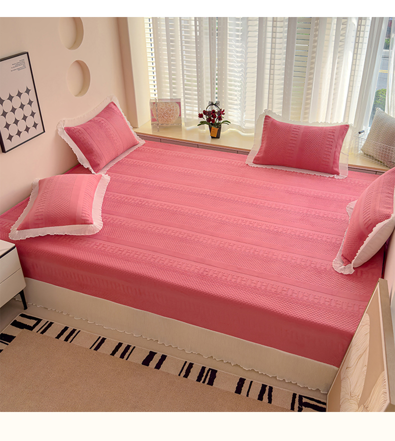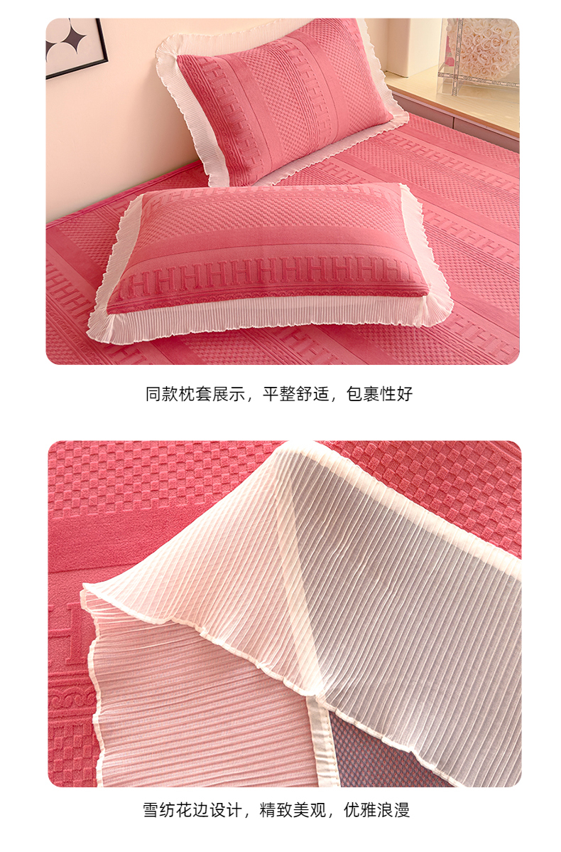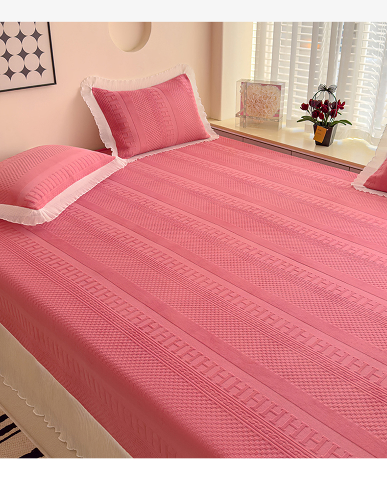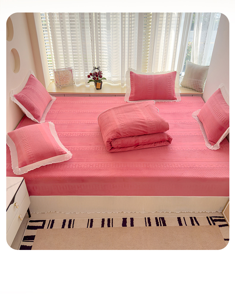 冬然家纺 2024新款雕花绒榻榻米床盖玫瑰粉