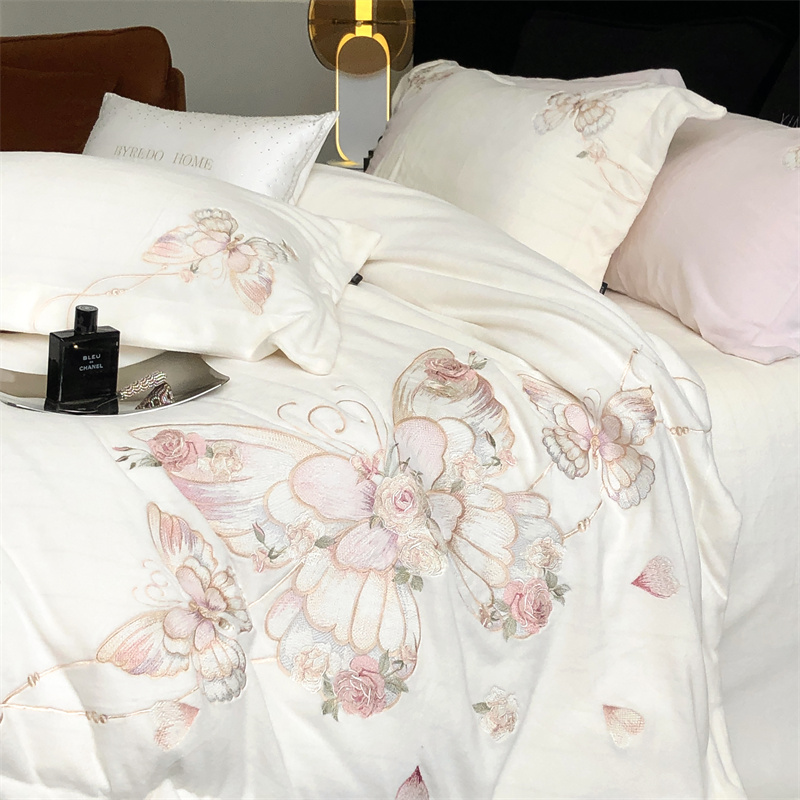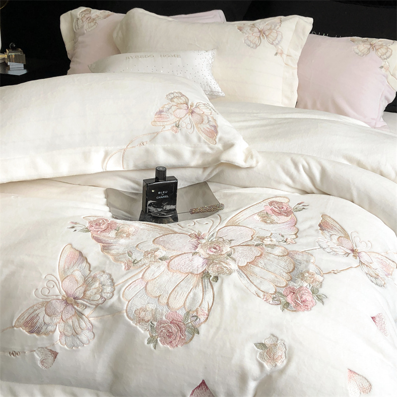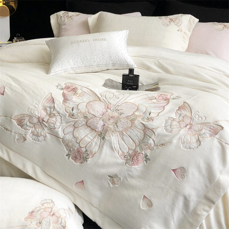 商品名称:馨蕊家居 2024秋冬轻奢煦暖绒高精密刺绣绒梦幻系列四件套 绒梦幻-月光白