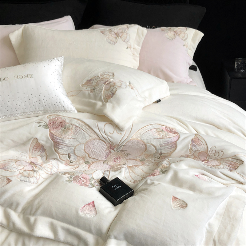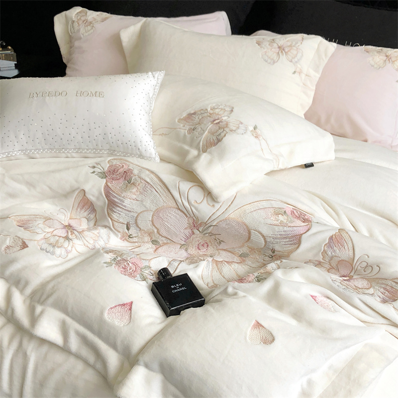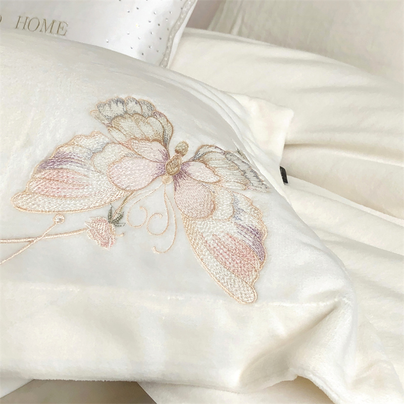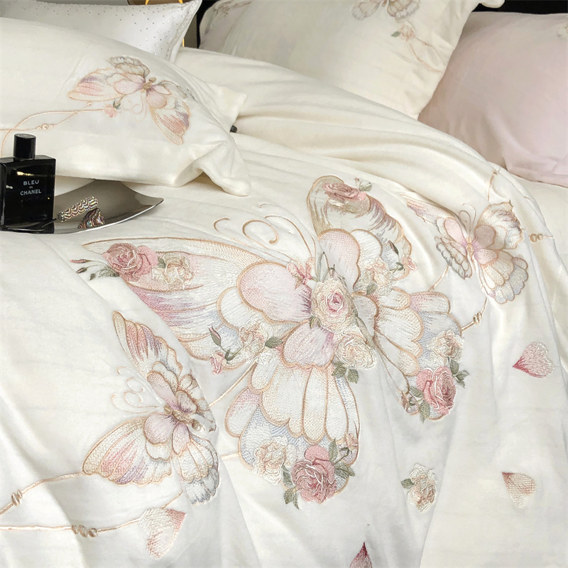馨蕊家居 2024秋冬轻奢煦暖绒高精密刺绣绒梦幻系列四件套 绒梦幻-月光白