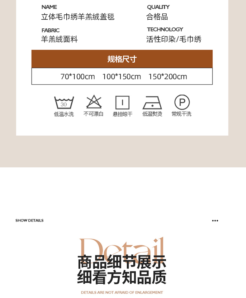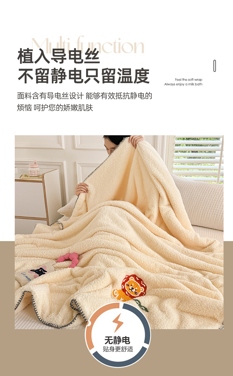 (总)简宜家居 2025新款立体毛巾绣三角针羊羔绒毯子一毯多用,大熊猫-绿,甜蜜兔-粉,甜蜜兔-蓝,小蜜蜂 米白,小蜜蜂-咖,小狮子-米黄