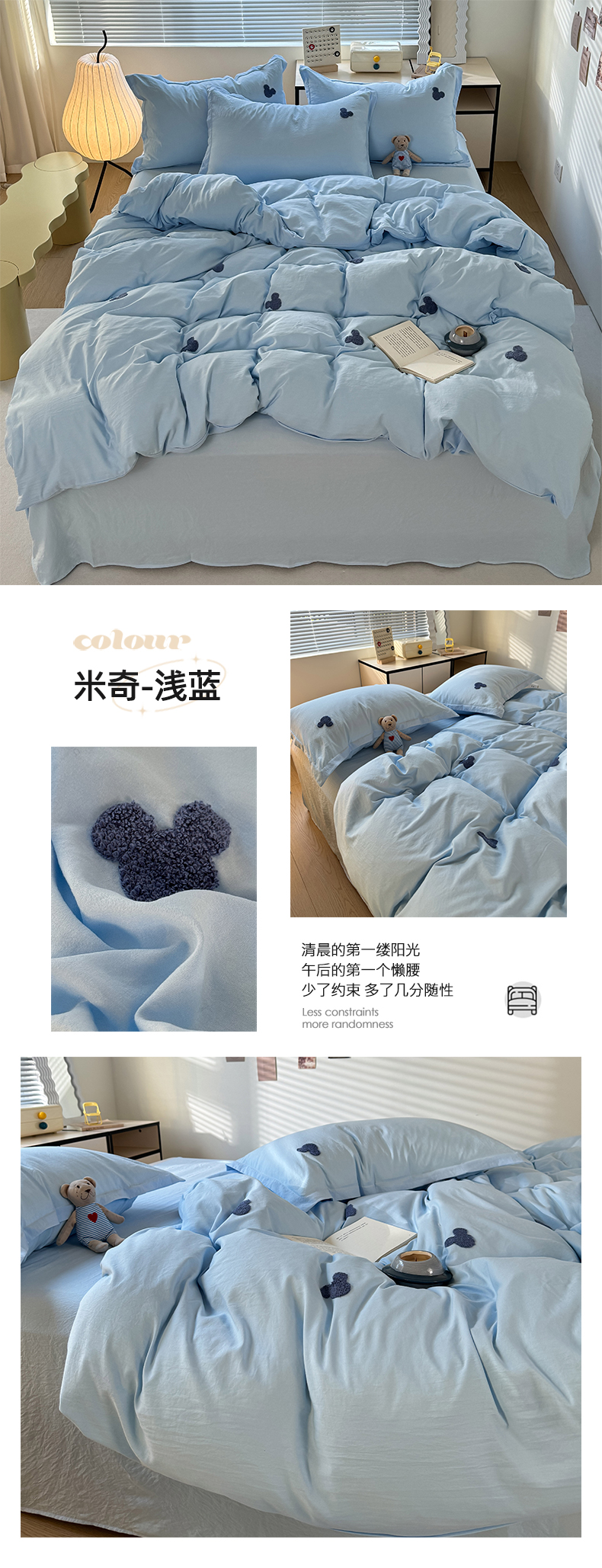 当前位置: 91家纺网 > 商品网购 > 床品套件 > 四件套 > 毛巾绣四件套 > 布可家纺 2025新款水洗棉毛巾绣四件套 米奇-浅蓝