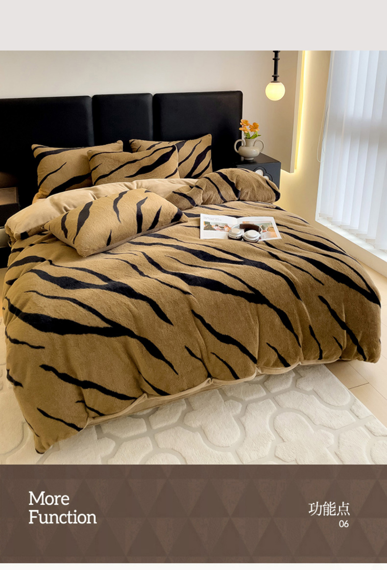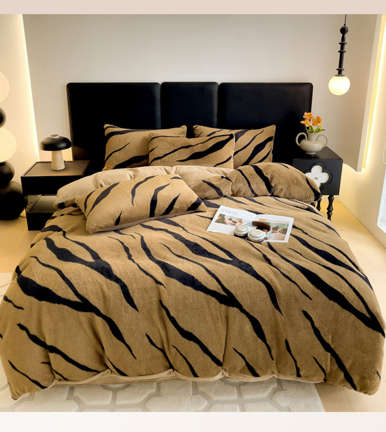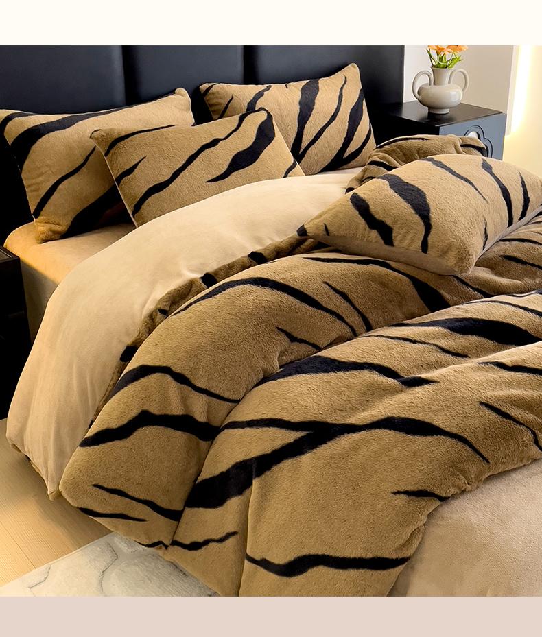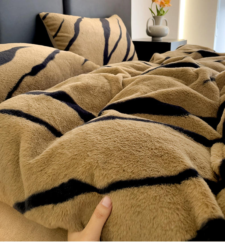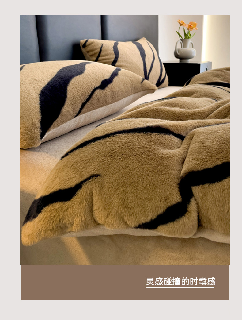 米莱家纺 2024新款兔毛绒牛奶绒斑马四件套 赫本焦月色