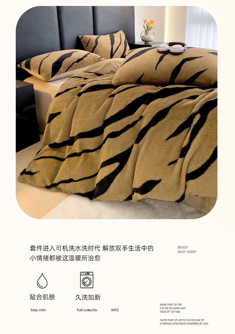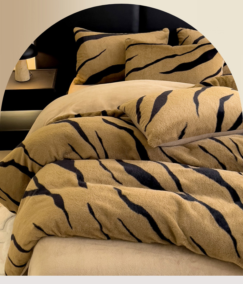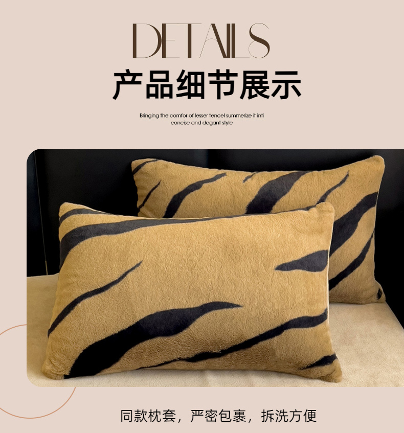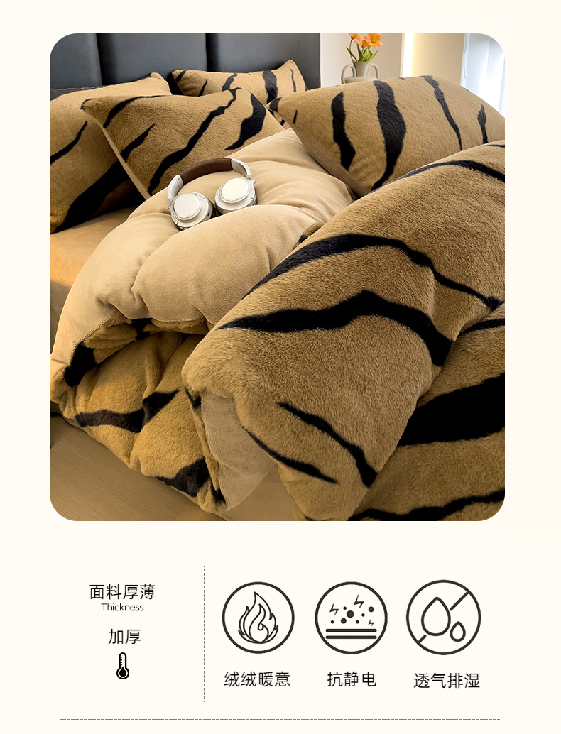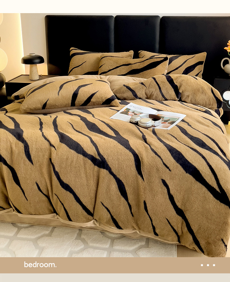 米莱家纺 2024新款兔毛绒牛奶绒斑马四件套 赫本焦月色
