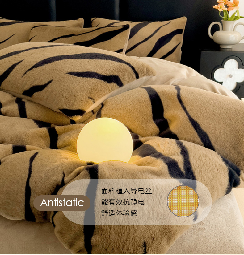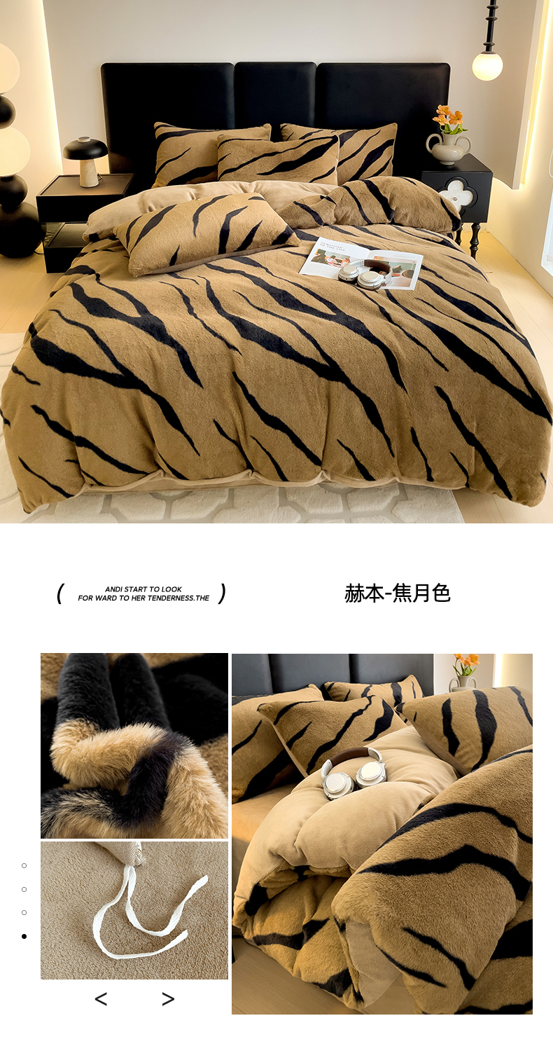 商品名称:米莱家纺 2024新款兔毛绒牛奶绒斑马四件套 赫本焦月色