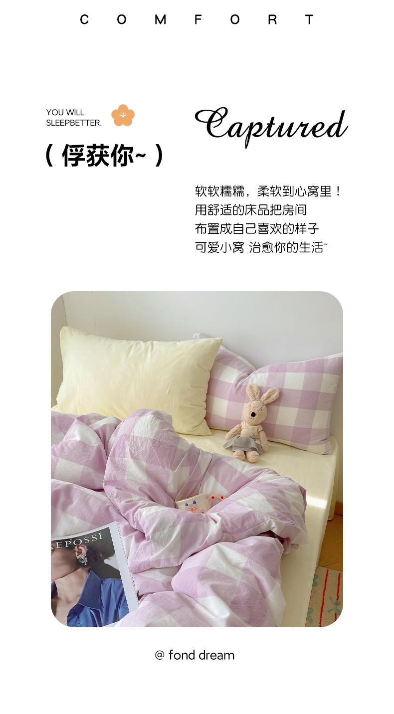 当前位置: 91家纺网 > 商品网购 > 床品套件 > 四件套 > 其它四件套 > 繁花家居 2024新款亲肤混搭印花四件套系列(提供买家秀) 混搭-芋紫方格