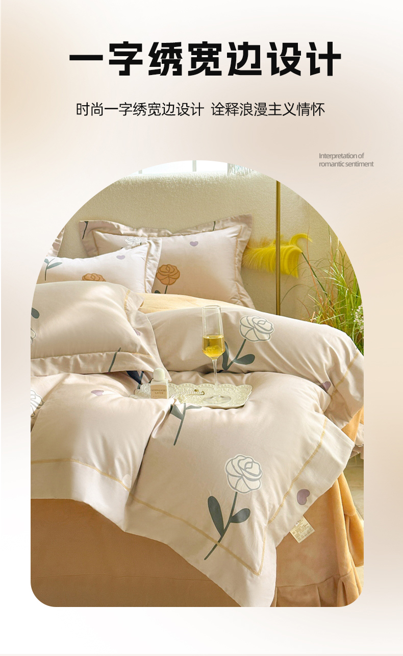(总)7V 2025新款A纯棉B牛奶绒轻奢大宽边一字绣四件套A类133*76全棉喷气宽幅长绒棉高克重全工艺牛奶绒,蝶舞,动感兔,罗非鱼,沐浴玫瑰,侏罗纪,字母控,梦天使