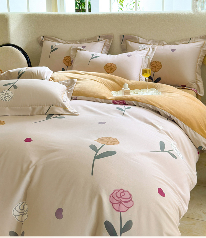 (总)7V 2025新款轻奢大宽边100%纯棉四件套133*76全棉喷气宽幅长绒棉被套床单床笠套件,橙光,春景-粉,花之茵,浣溪花-米,眷恋,可蒂狗-灰,乐悠闲,麦风,曼妙,玫瑰集-粉,蜜朵-米,沐遇玫瑰,星星兔,醒春集-灰,雅绘,侏罗纪