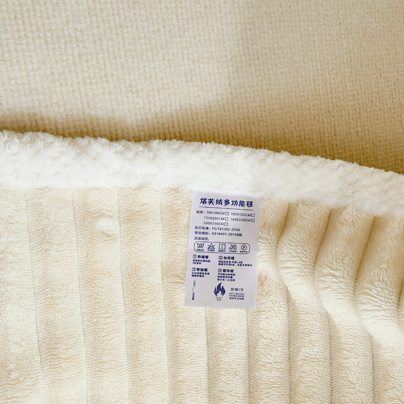 商品名称:鹏程 24款300克抽条毛毯高克重法莱绒牛奶绒贝贝绒毛毯 米白条