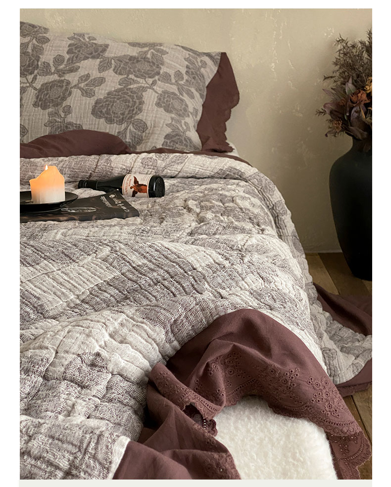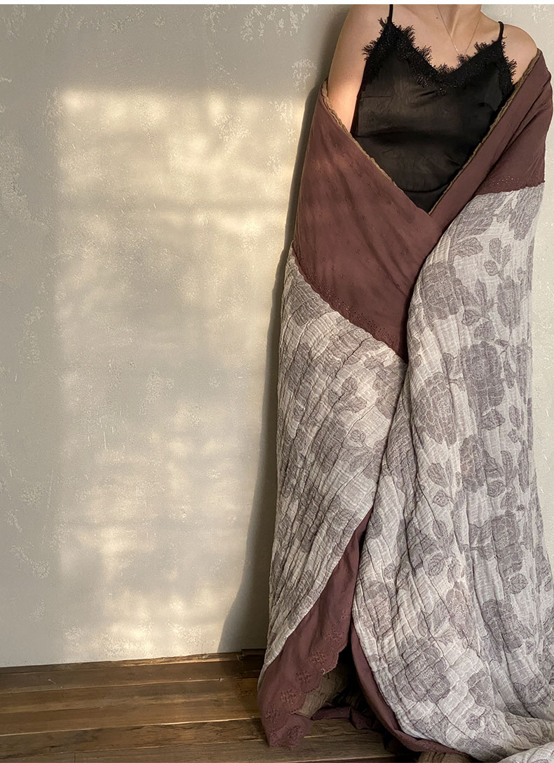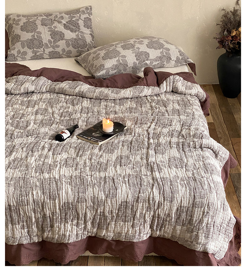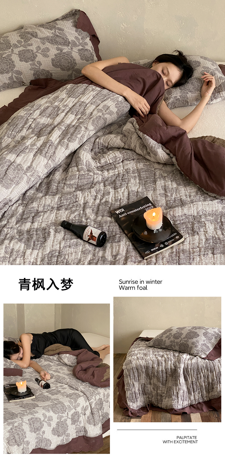 商品名称:麻依 2024新款十层单股纱美学被花边款纱布秋冬被子 青枫入梦