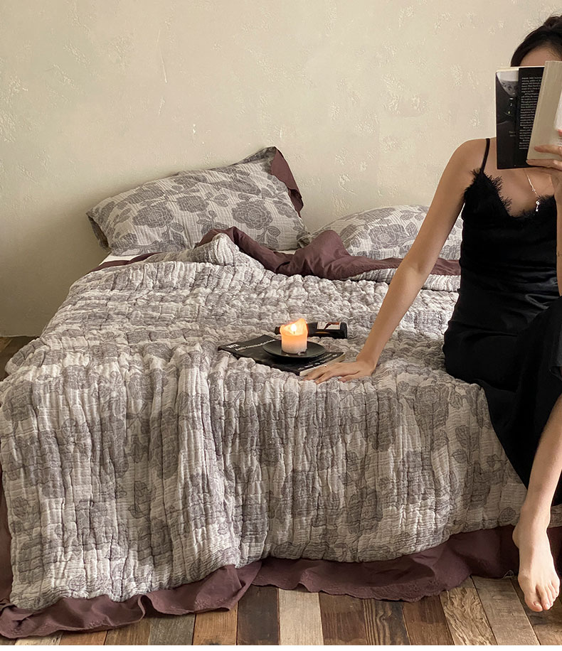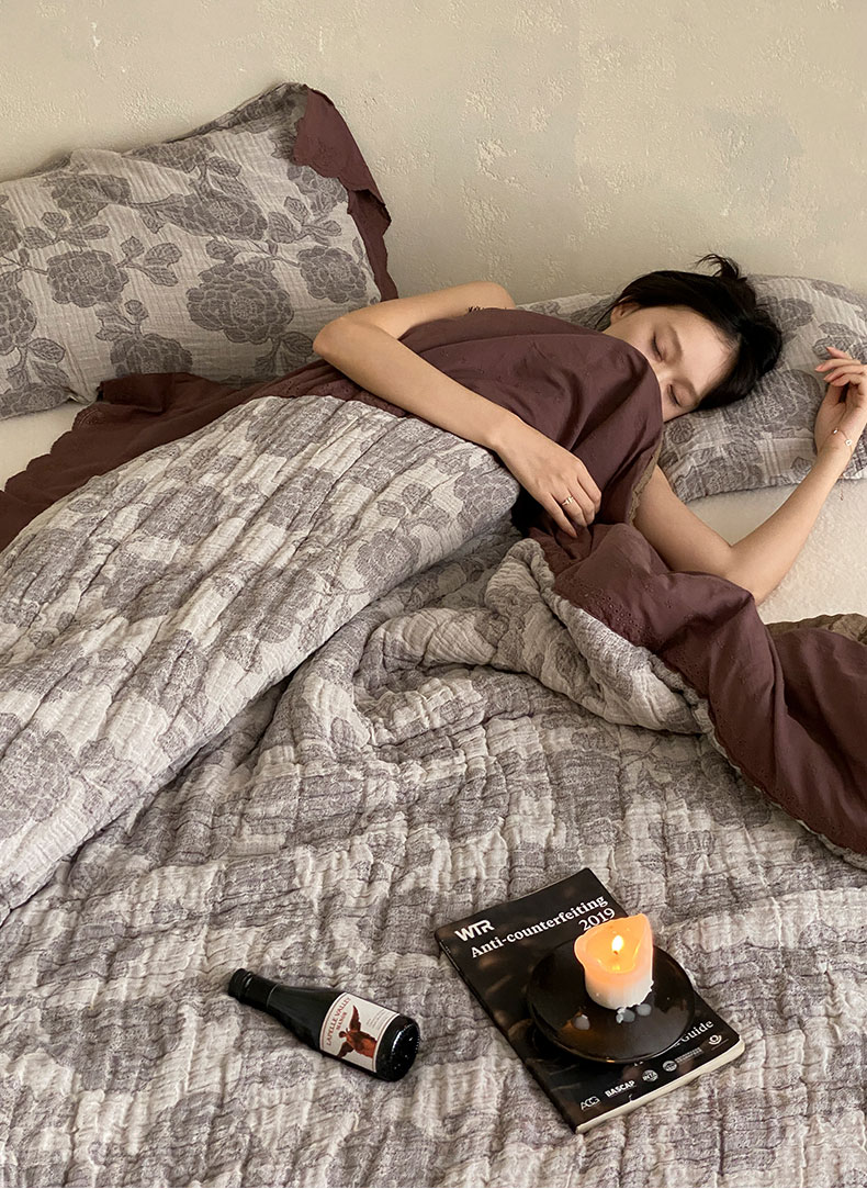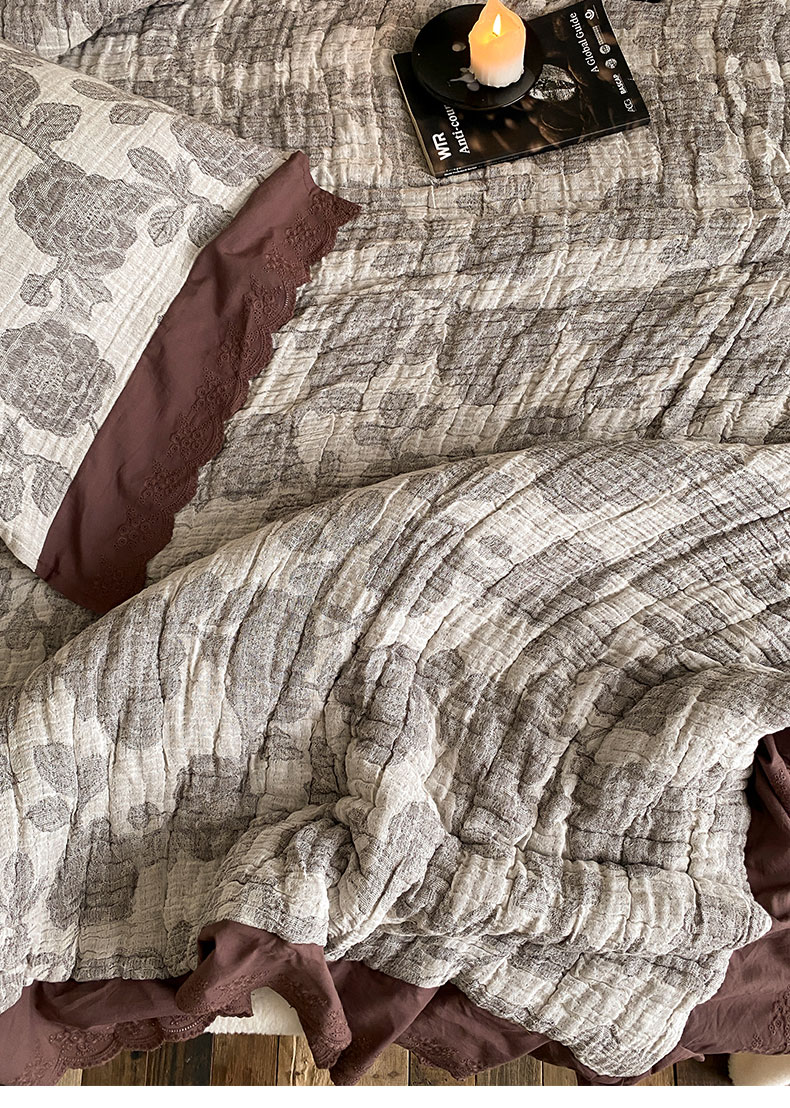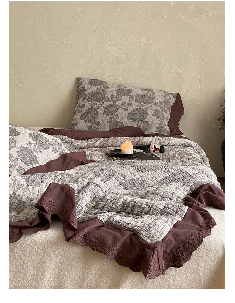 商品名称:麻依 2024新款十层单股纱美学被花边款纱布秋冬被子 青枫入梦