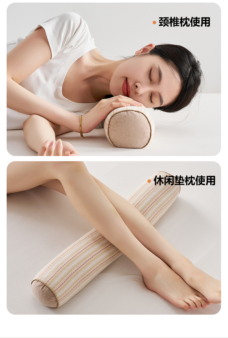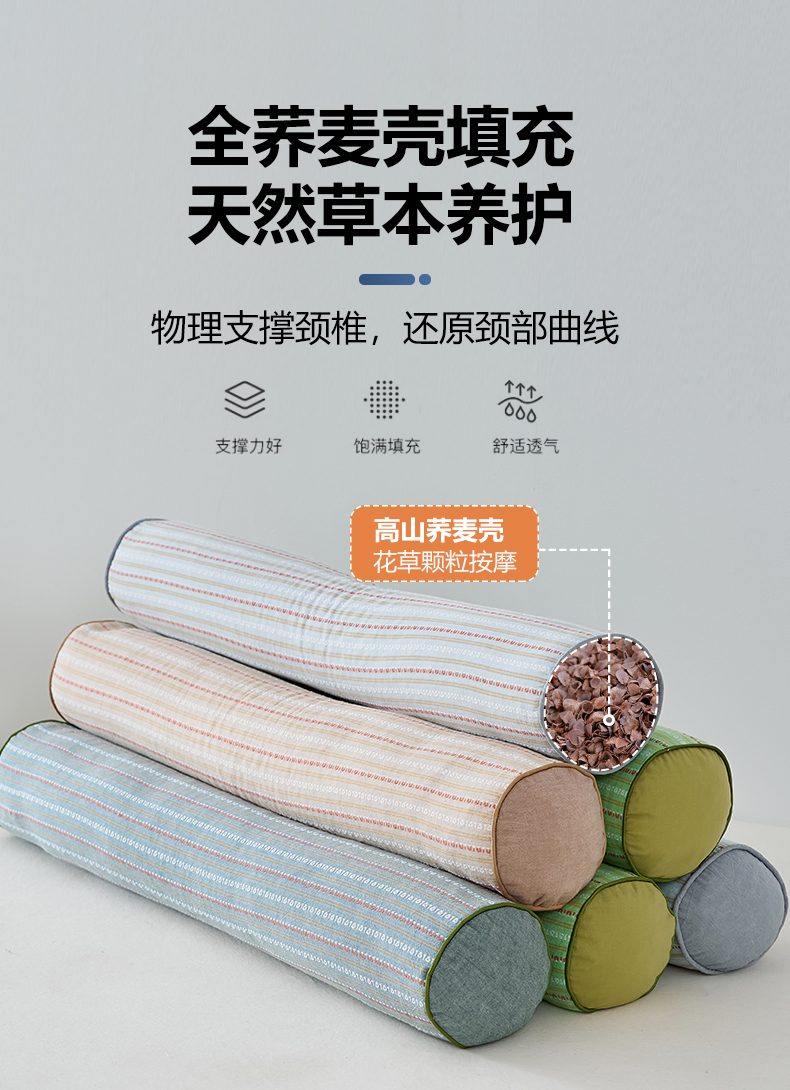 (总)乐可 2024新款全棉3D条纹荞麦圆柱枕枕头枕芯
