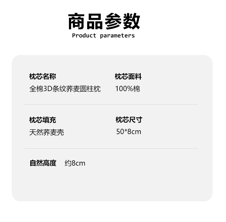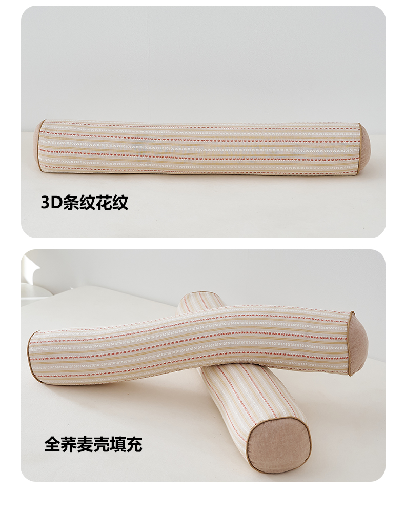 商品名称:(总)乐可 2024新款全棉3D条纹荞麦圆柱枕枕头枕芯