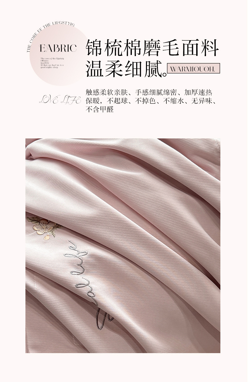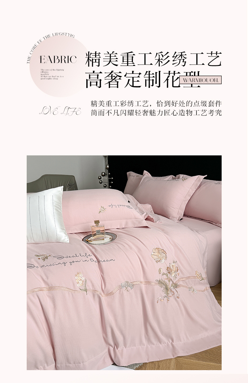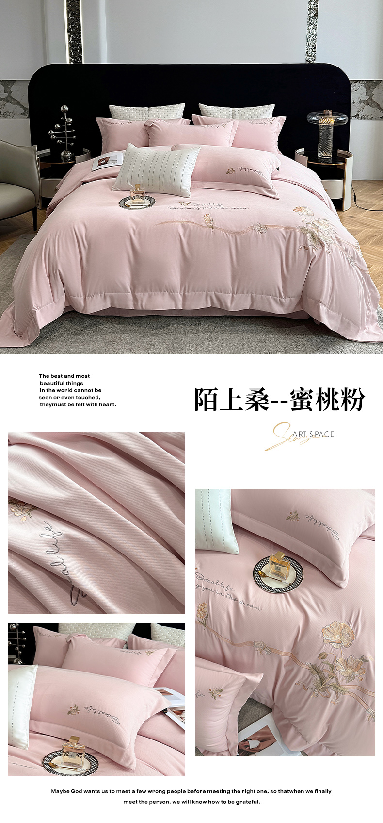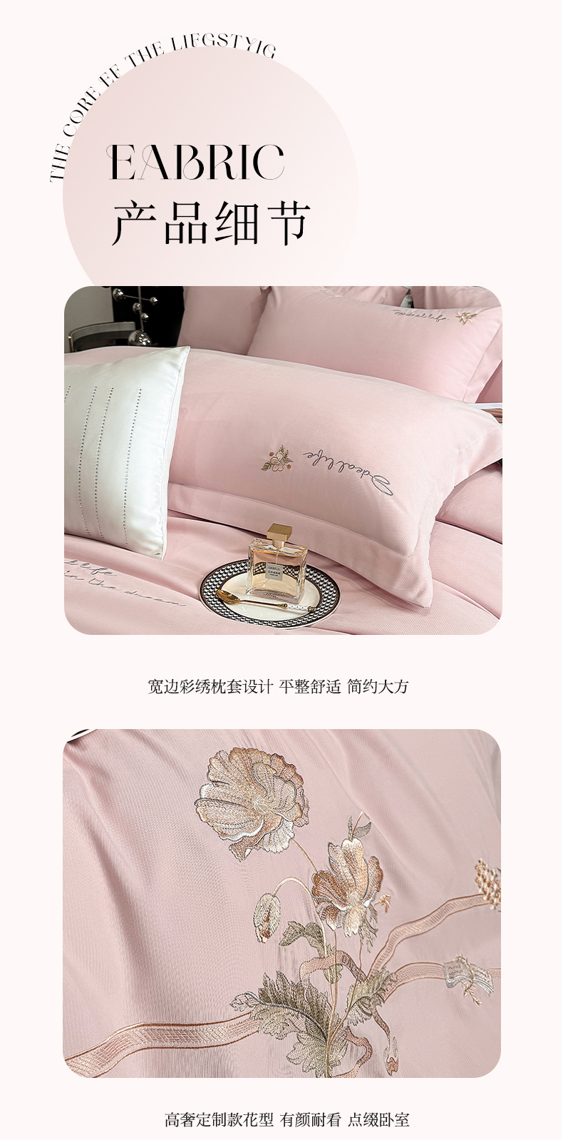 棠颂家纺 2025新款亲肤锦梳棉磨毛刺绣四件套(礼盒款) 陌上桑--蜜桃粉