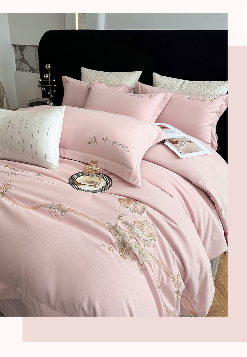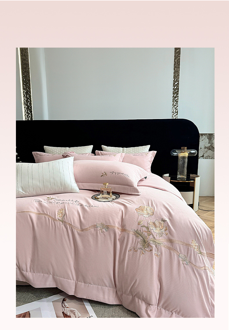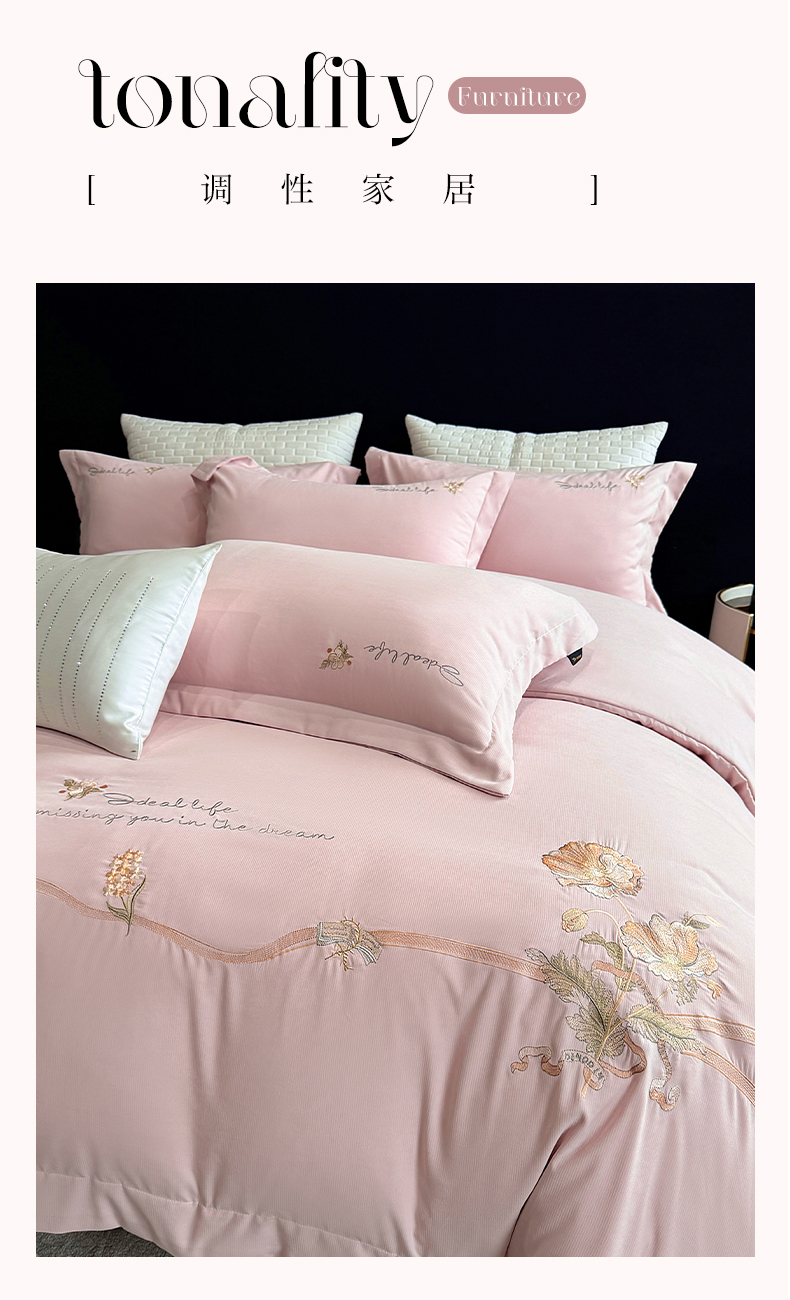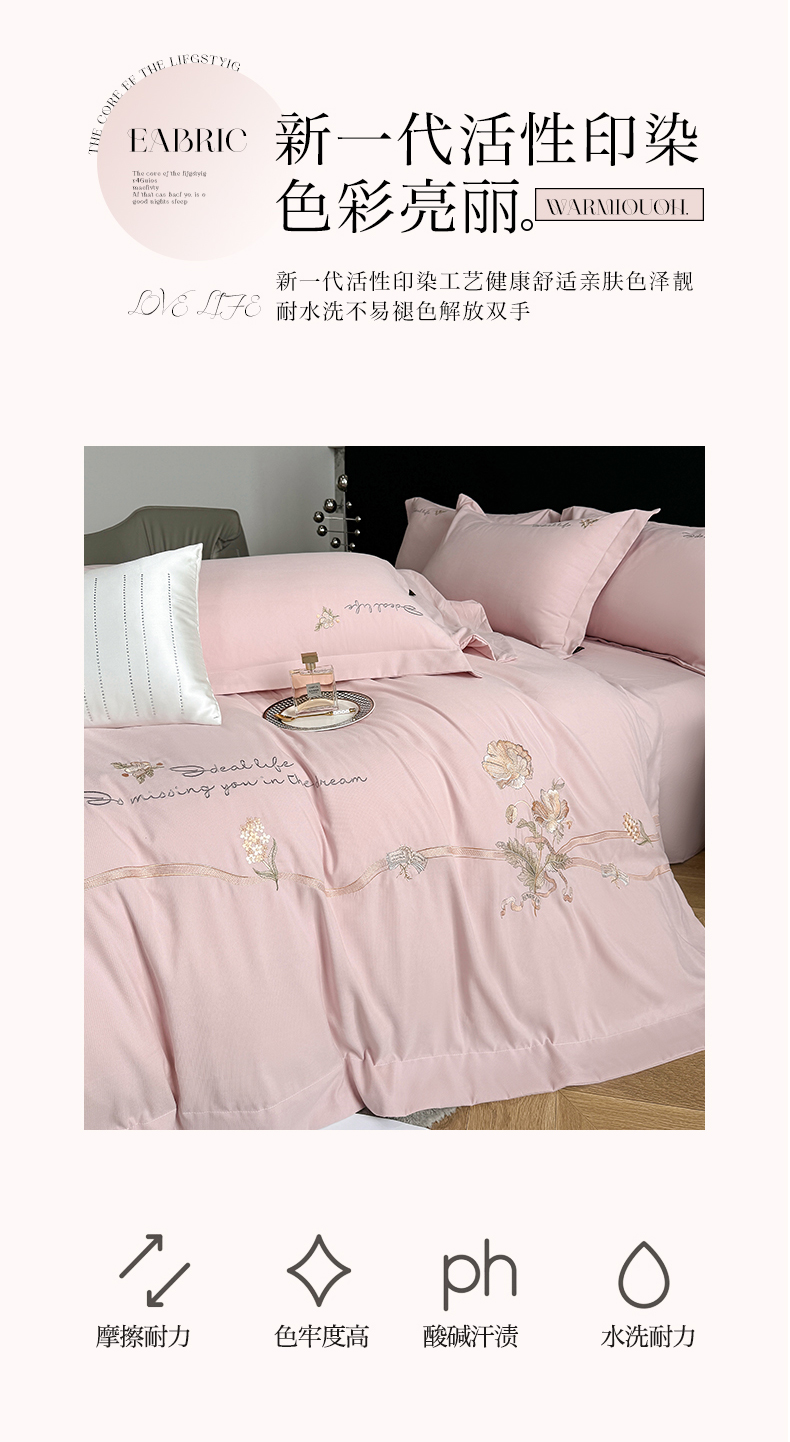 棠颂家纺 2025新款亲肤锦梳棉磨毛刺绣四件套(礼盒款) 陌上桑--蜜桃粉