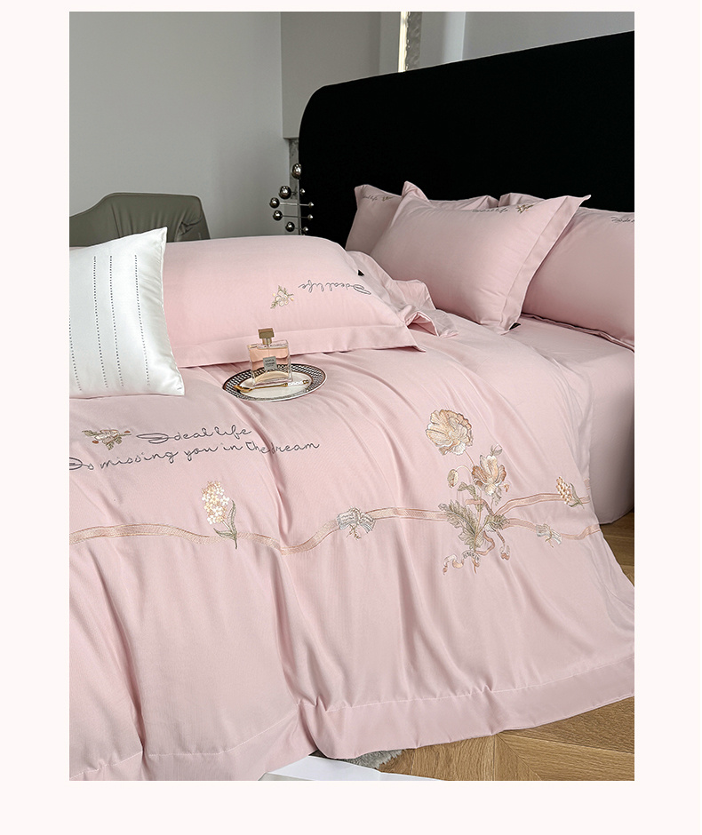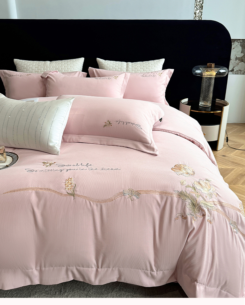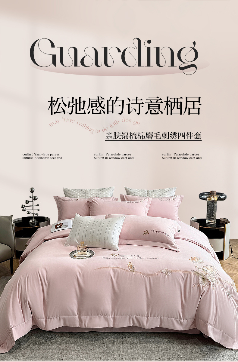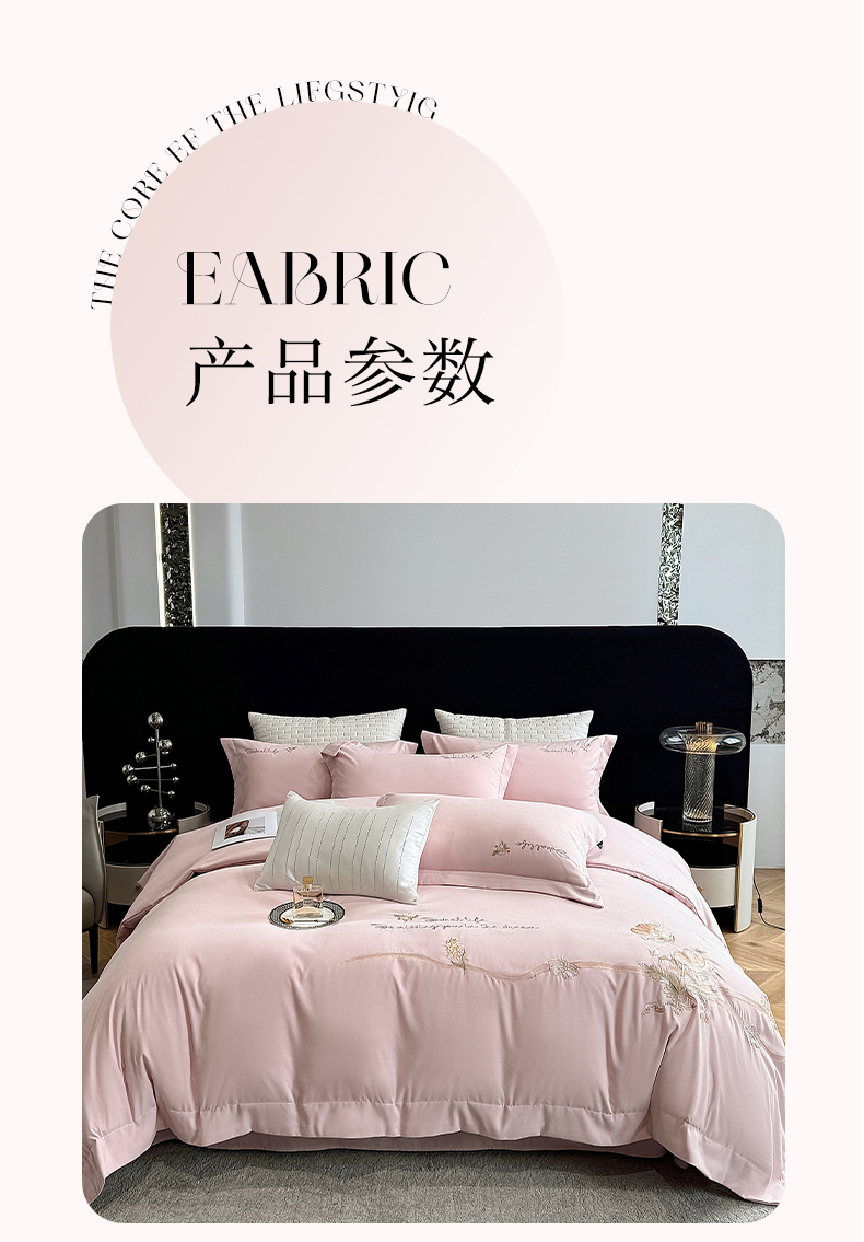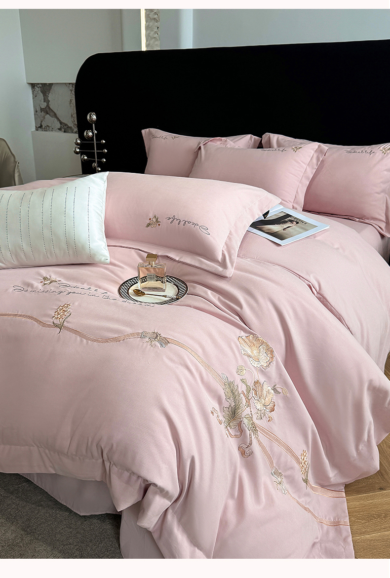 棠颂家纺 2025新款亲肤锦梳棉磨毛刺绣四件套(礼盒款) 陌上桑--蜜桃粉