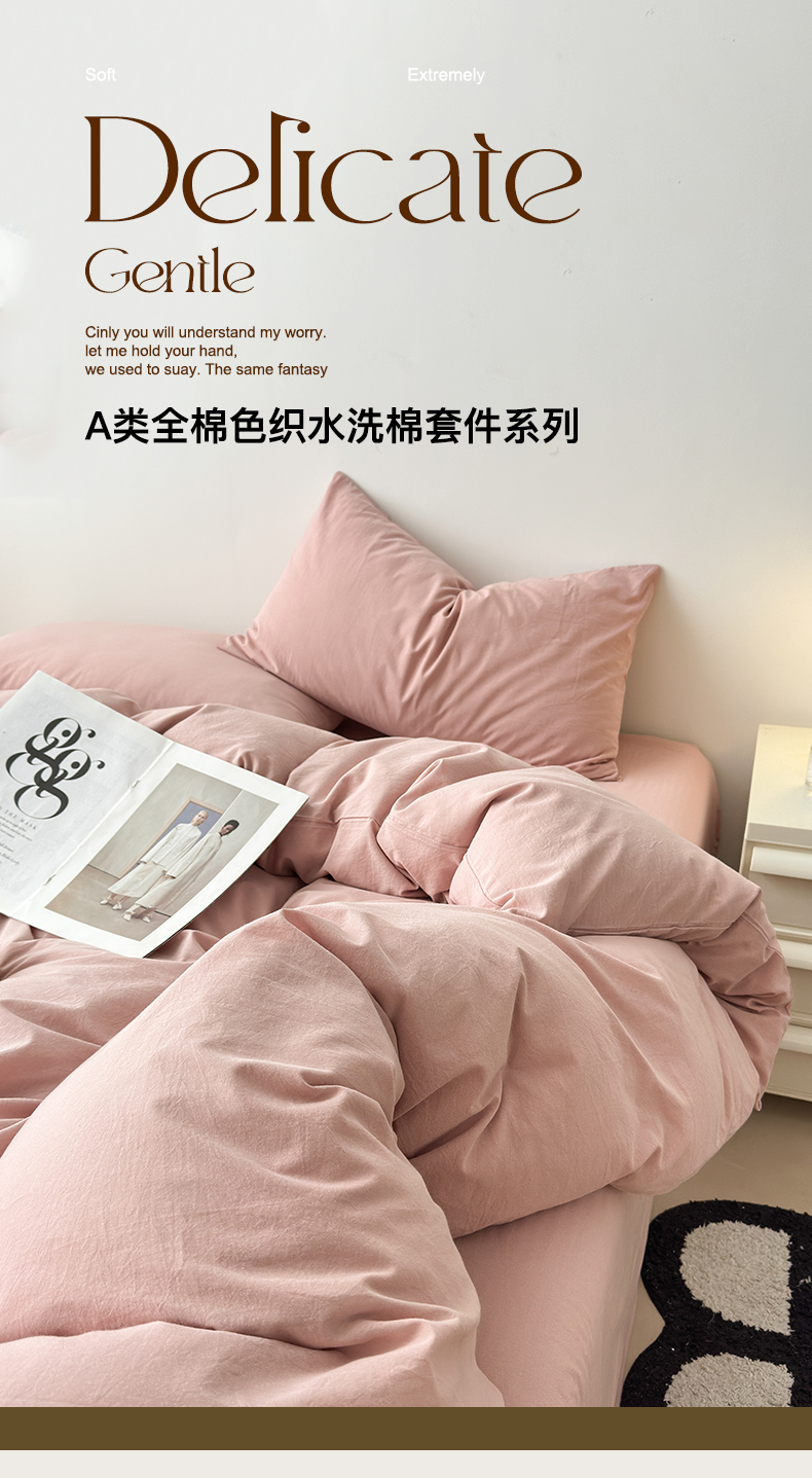 商品名称:清雅福 2024新款全棉A类水洗棉单品被套 简约-藕粉