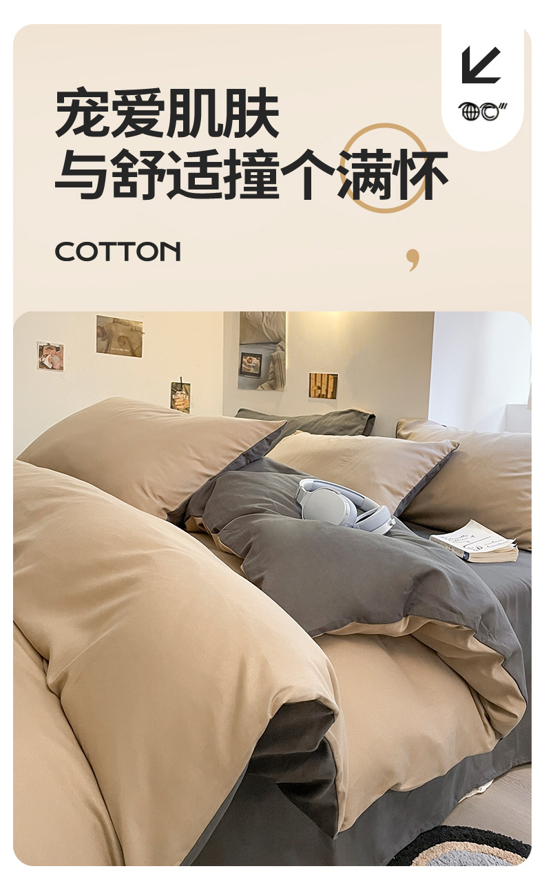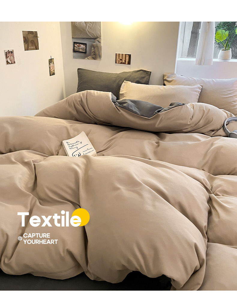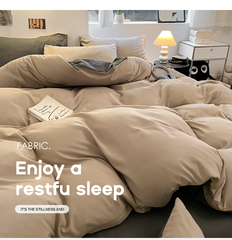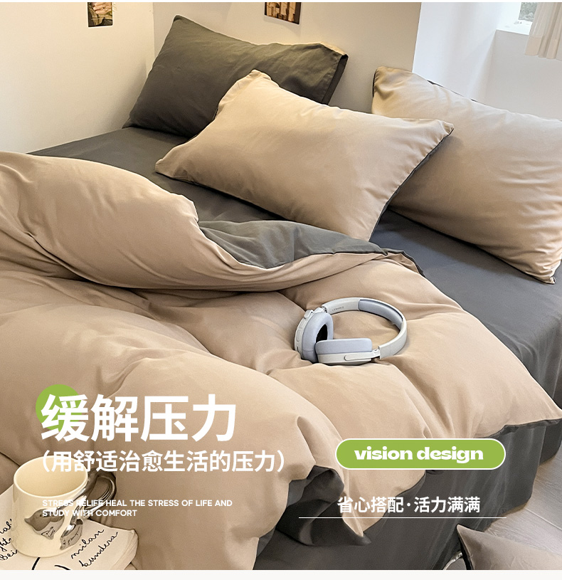 当前位置: 91家纺网 > 商品网购 > 床品套件 > 四件套 > 磨毛活性四件套 > 米粒 2024新款纯色简约双拼磨毛四件套 咖+深灰