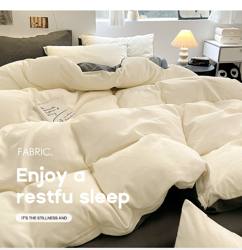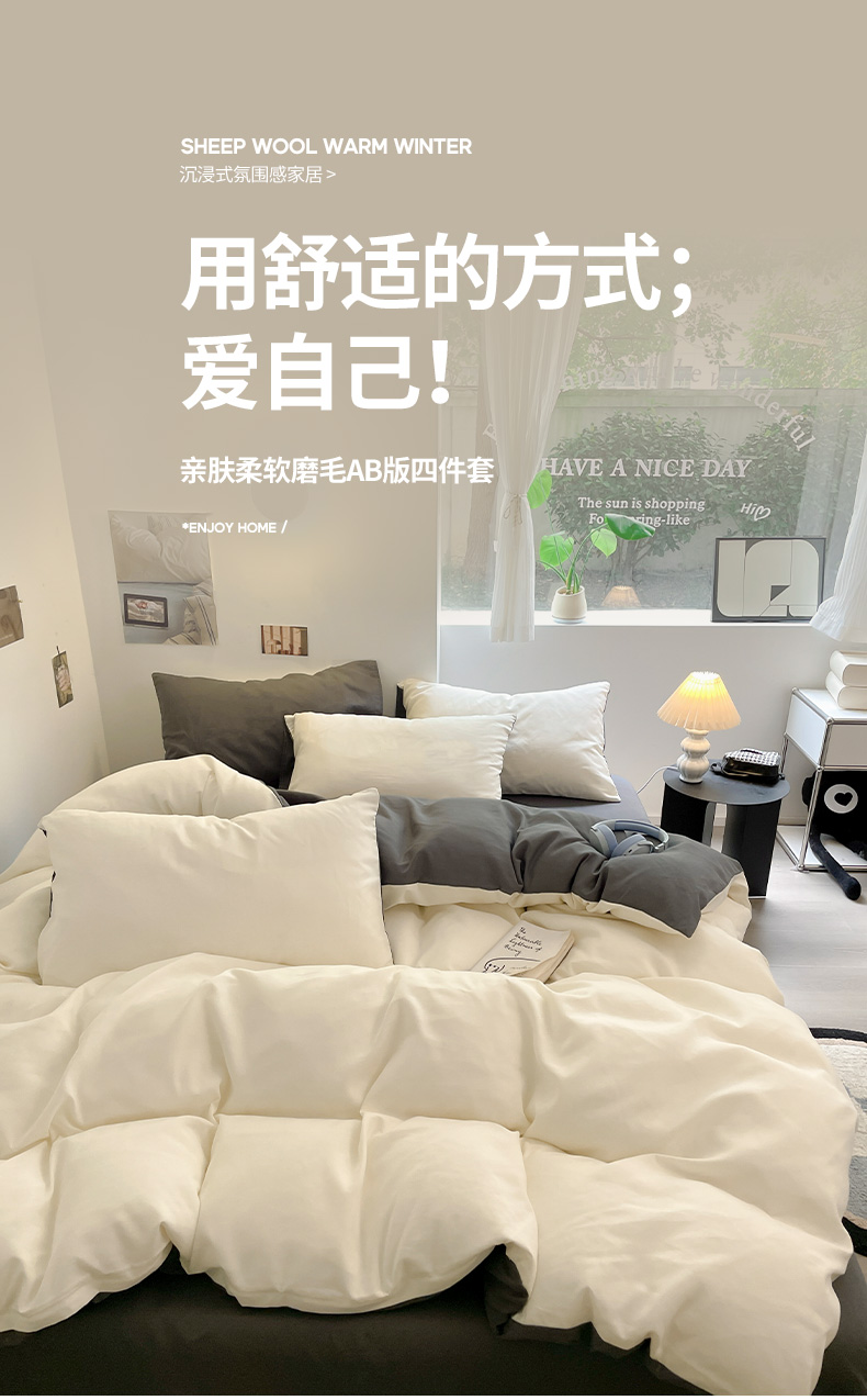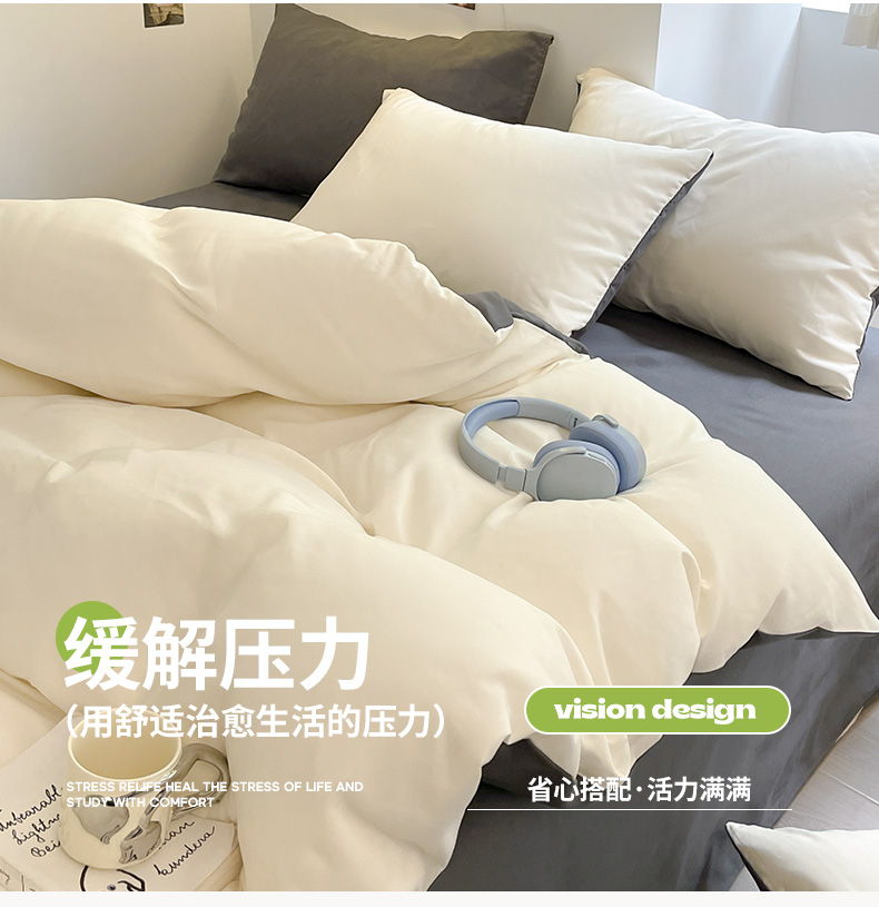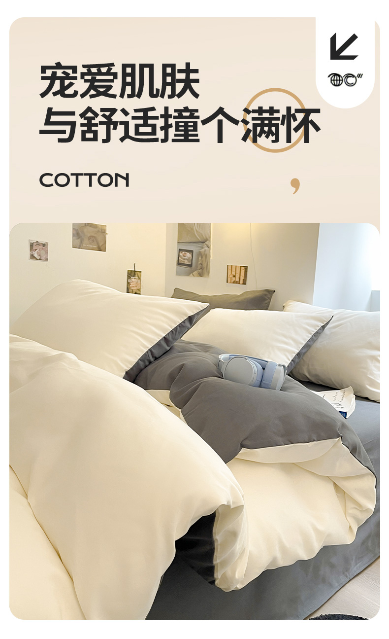 当前位置: 91家纺网 > 商品网购 > 床品套件 > 四件套 > 磨毛活性四件套 > 米粒 2024新款纯色简约双拼磨毛四件套 白+灰