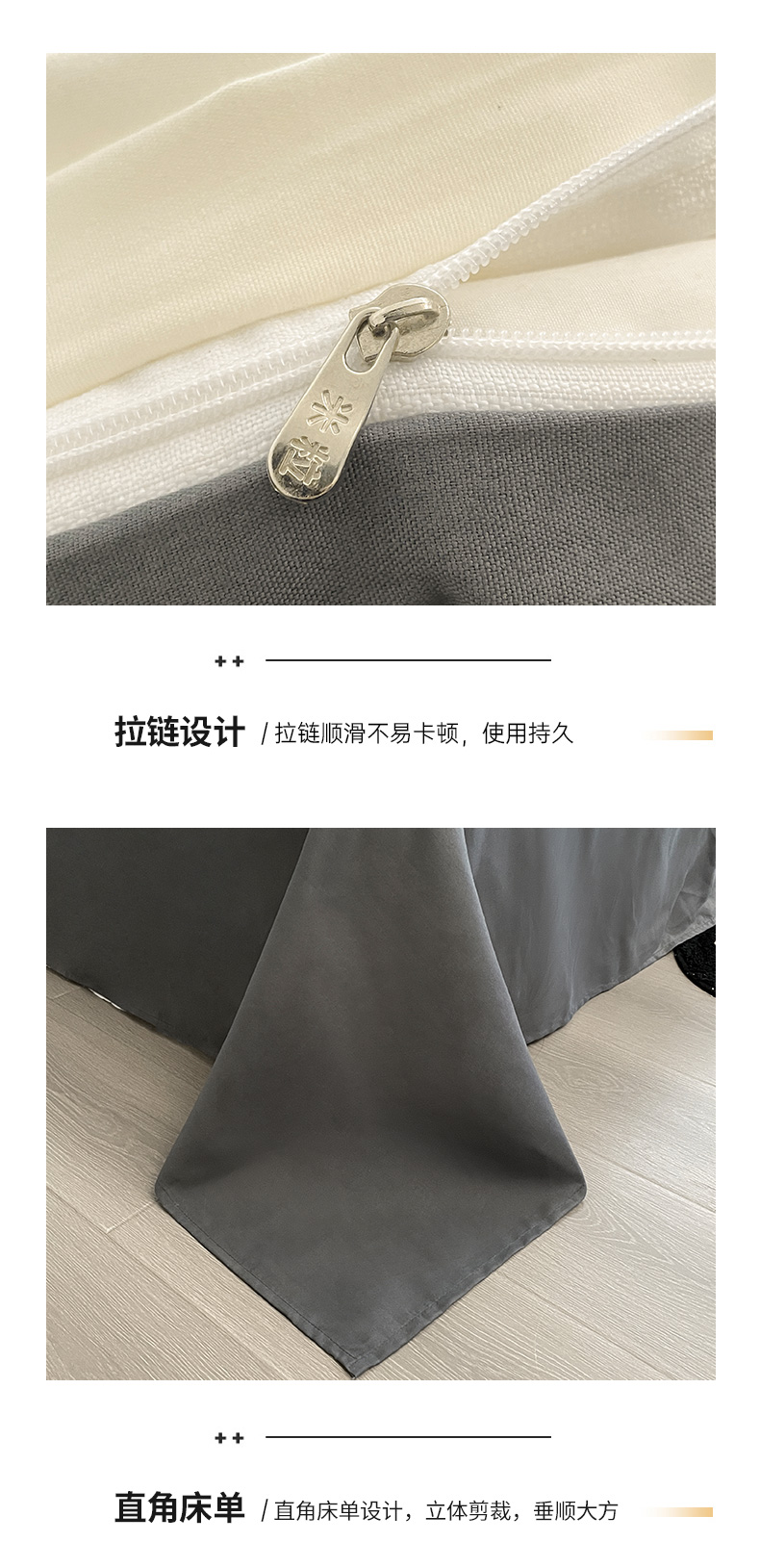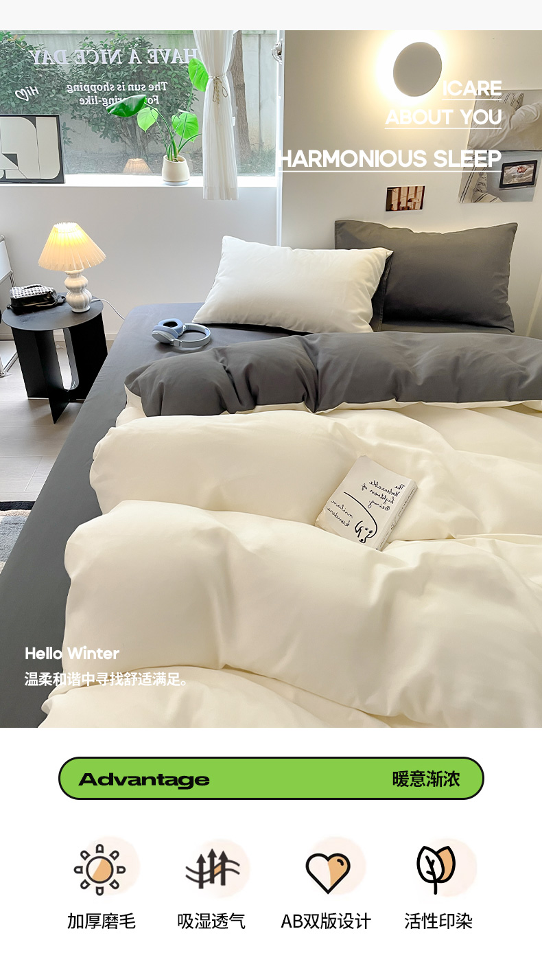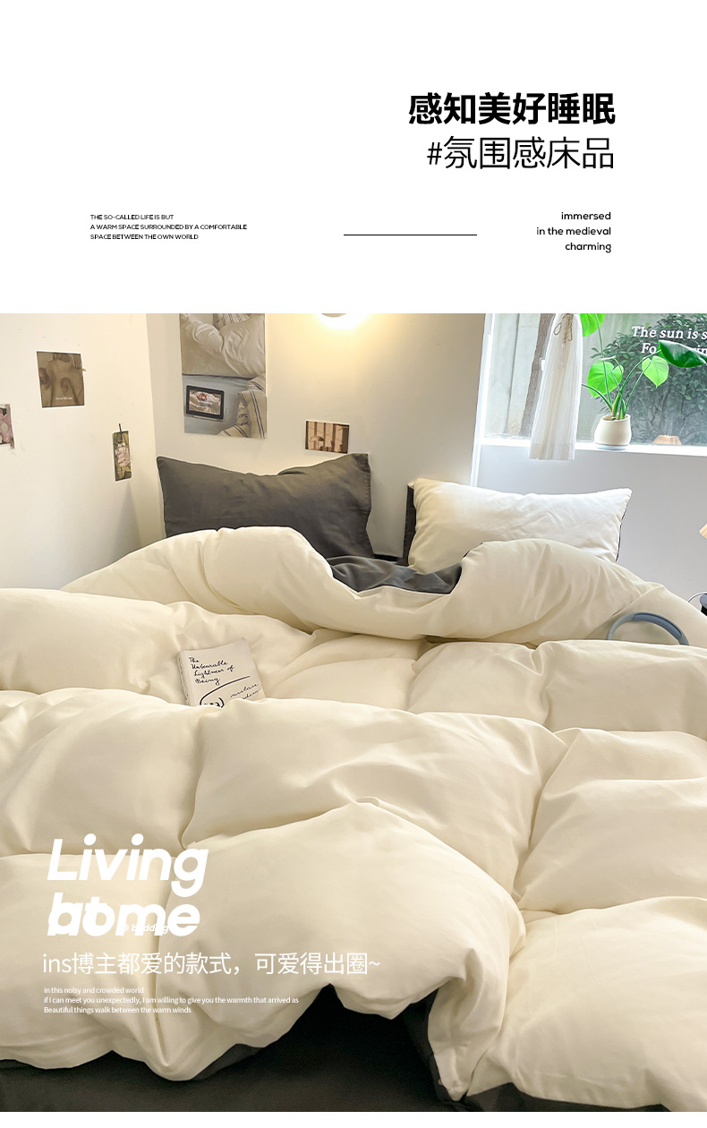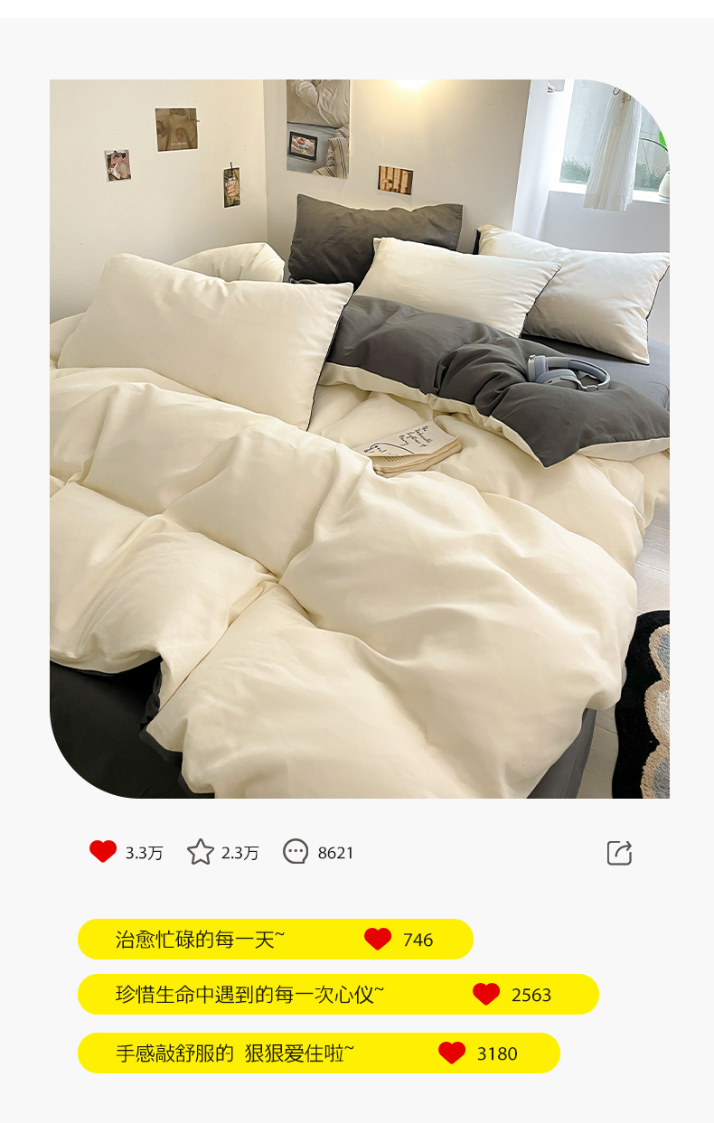 当前位置: 91家纺网 > 商品网购 > 床品套件 > 四件套 > 磨毛活性四件套 > 米粒 2024新款纯色简约双拼磨毛四件套 白+灰