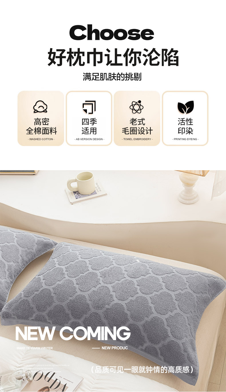 (总)美宜家 2025新款优质纯棉高档立体提花纯色枕巾,52*75cm/只典雅粉,52*75cm/对典雅粉,52*75cm/只典雅灰,52*75cm/对典雅灰,52*75cm/只典雅蓝,52*75cm/对典雅蓝,52*75cm/只典雅驼,52*75cm/对典雅驼,52*75cm/只典雅锈红,52*75cm/对典雅锈红