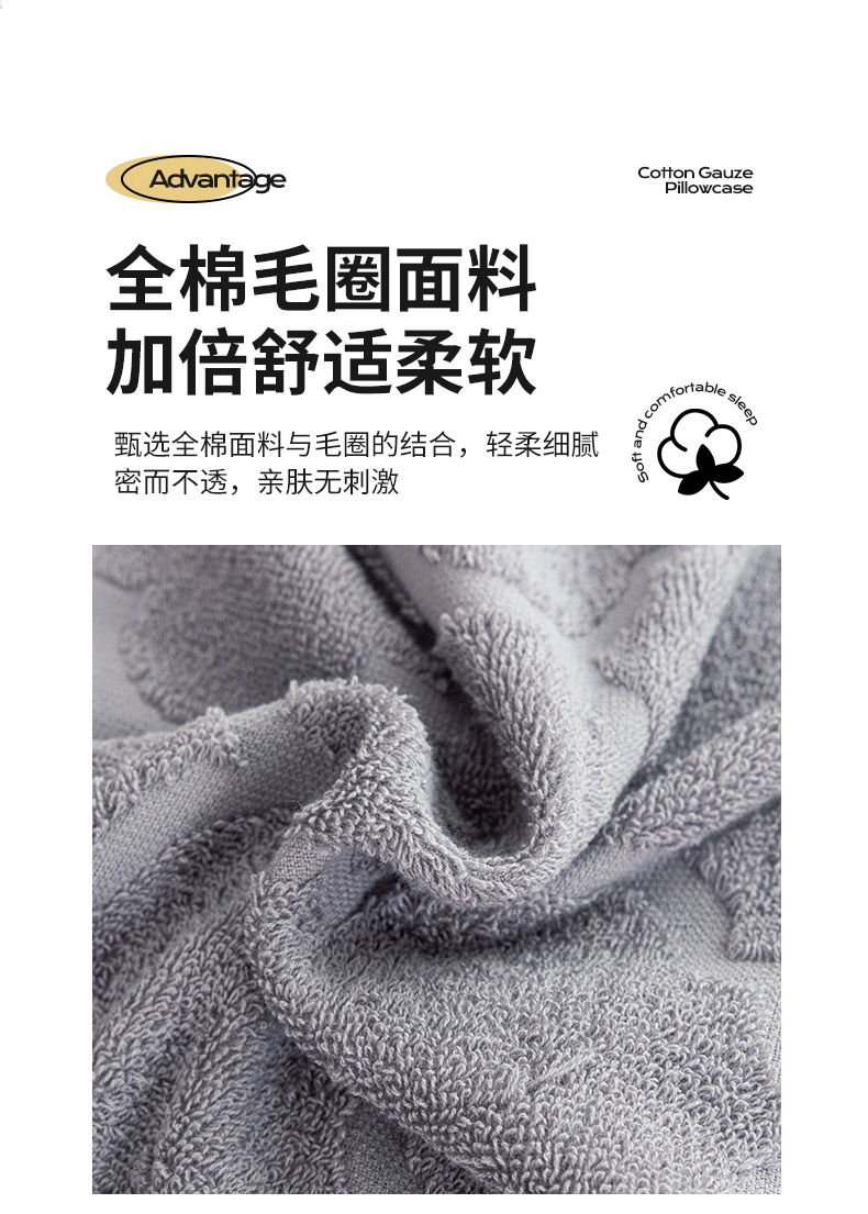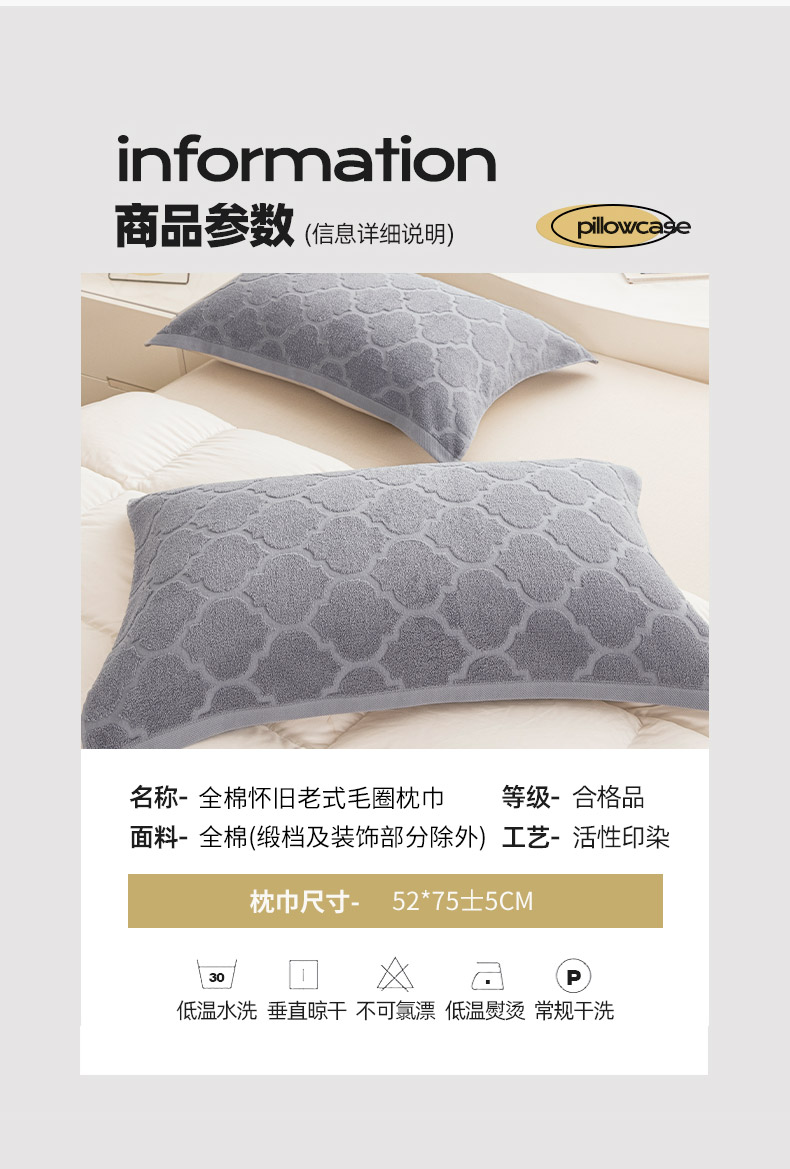 商品名称:美宜家 2025新款全棉怀旧老式毛巾圈枕巾一对 团圆灰