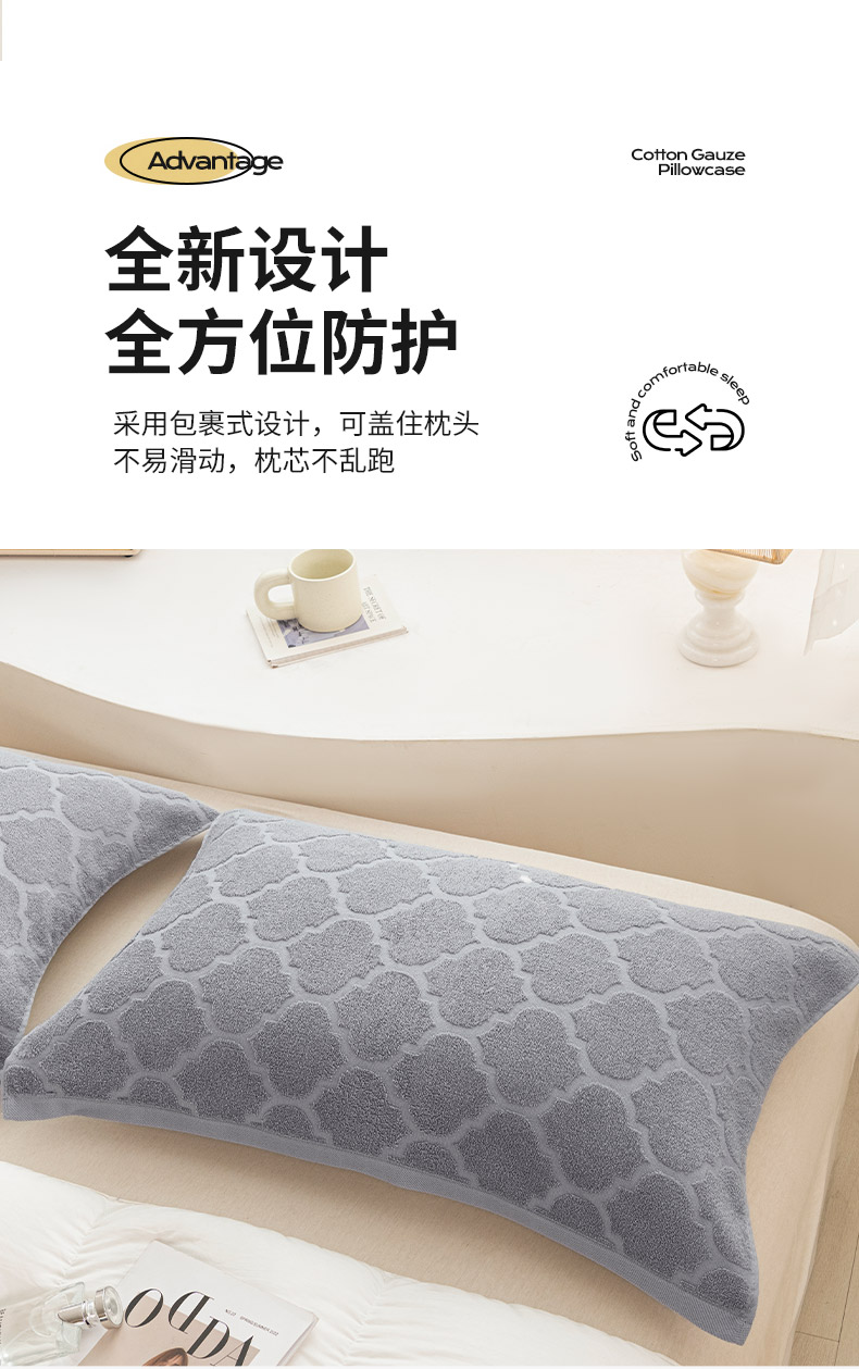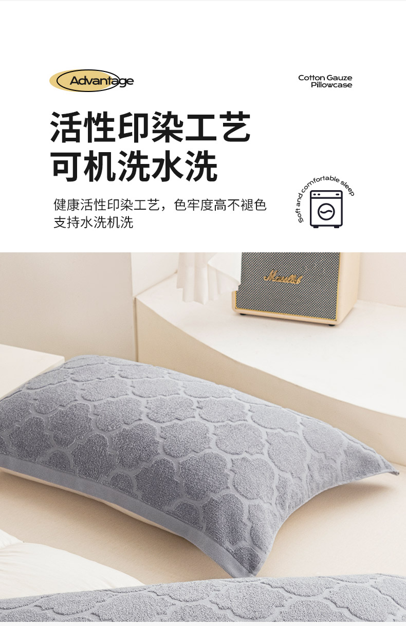 (总)美宜家 2026新款全棉枕头套高密色织水洗加棉绗缝高端纯色枕套,极简山灰,极简米其,极简兰灰,极简仔兰