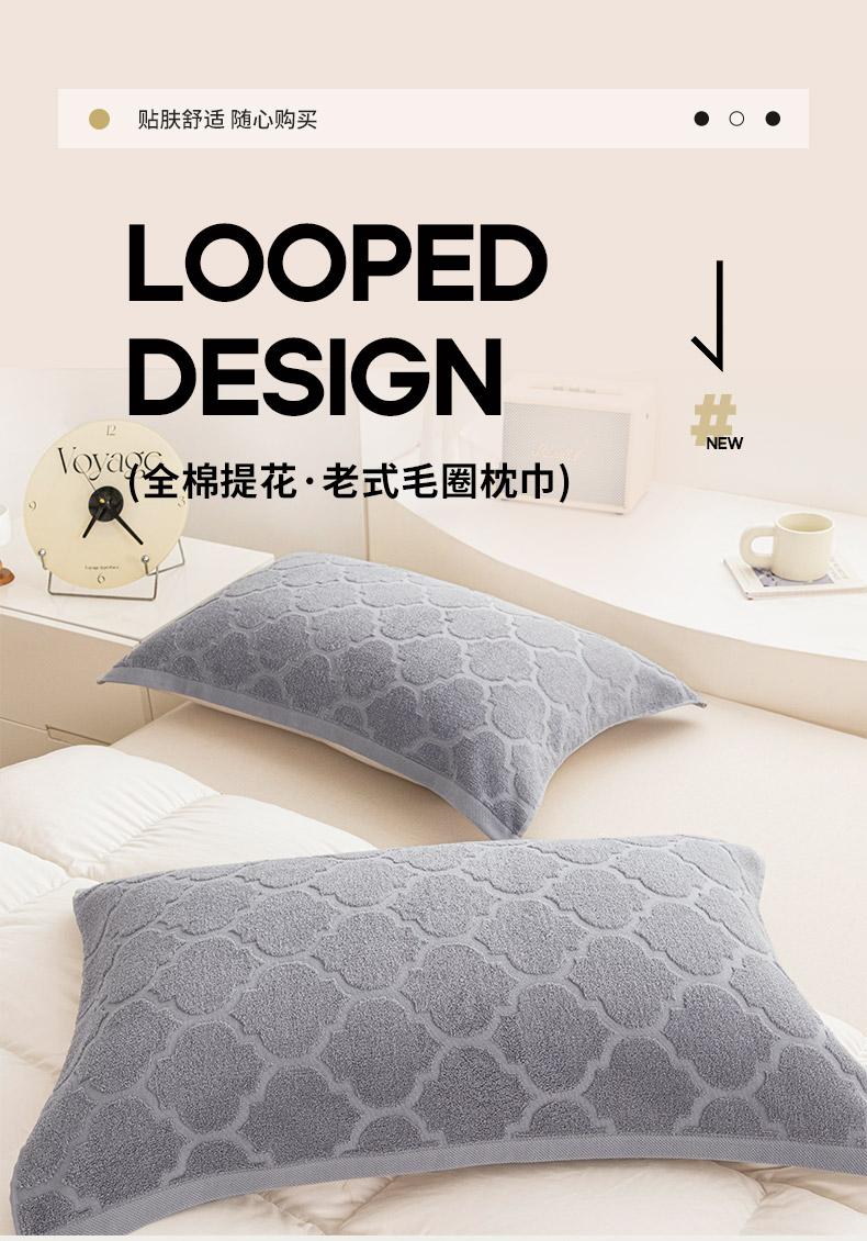 美宜家 2025新款全棉怀旧老式毛巾圈枕巾一对 团圆灰