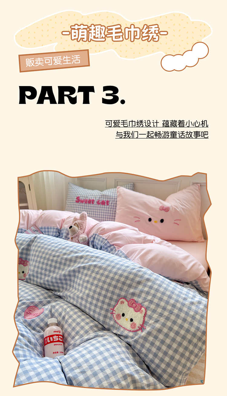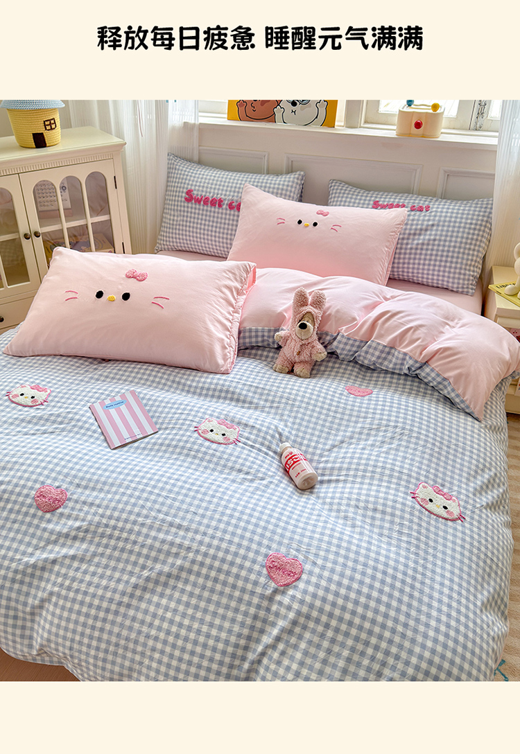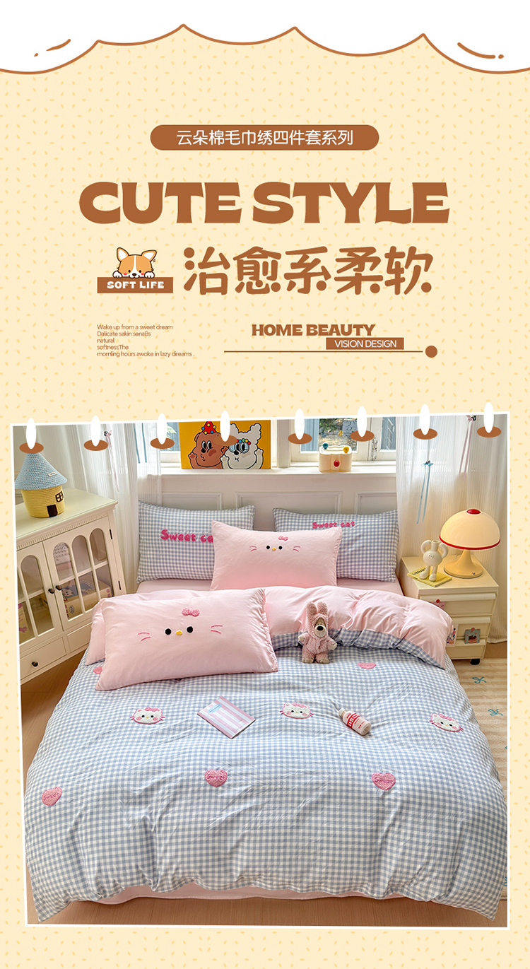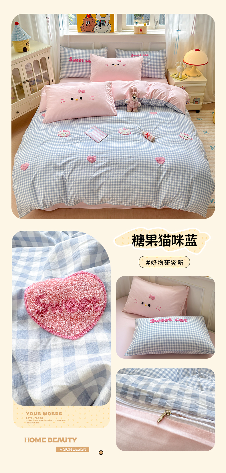 当前位置: 91家纺网 > 商品网购 > 床品套件 > 四件套 > 其它四件套 > 罗亿家纺 2025新款韩版糯糯棉(110克)毛巾绣四件套-场景三(提供买家秀) 糖果猫咪蓝