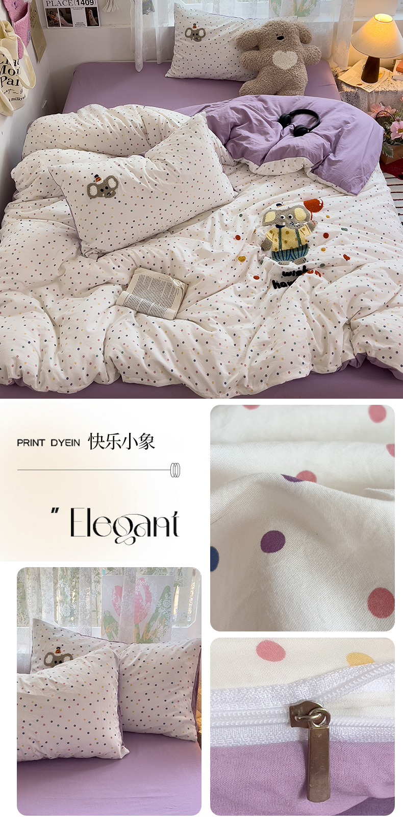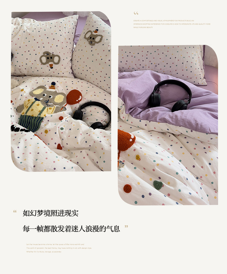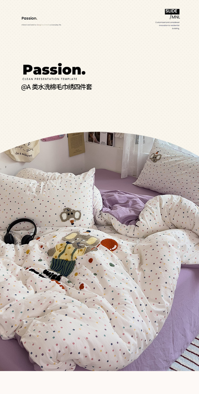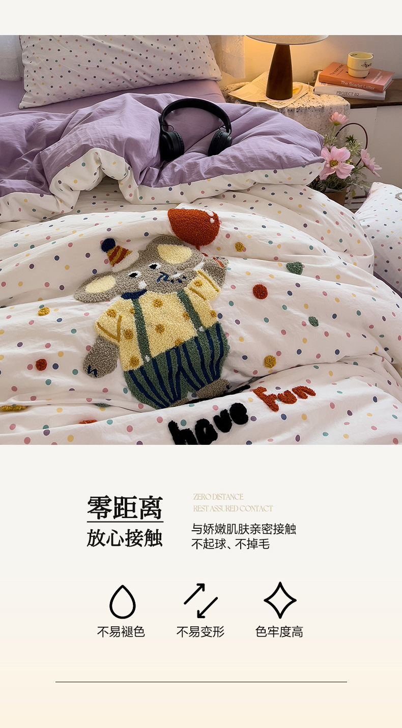 当前位置: 91家纺网 > 商品网购 > 床品套件 > 四件套 > 水洗棉四件套 > 2024新款水洗棉毛巾绣四件套系列 快乐小象