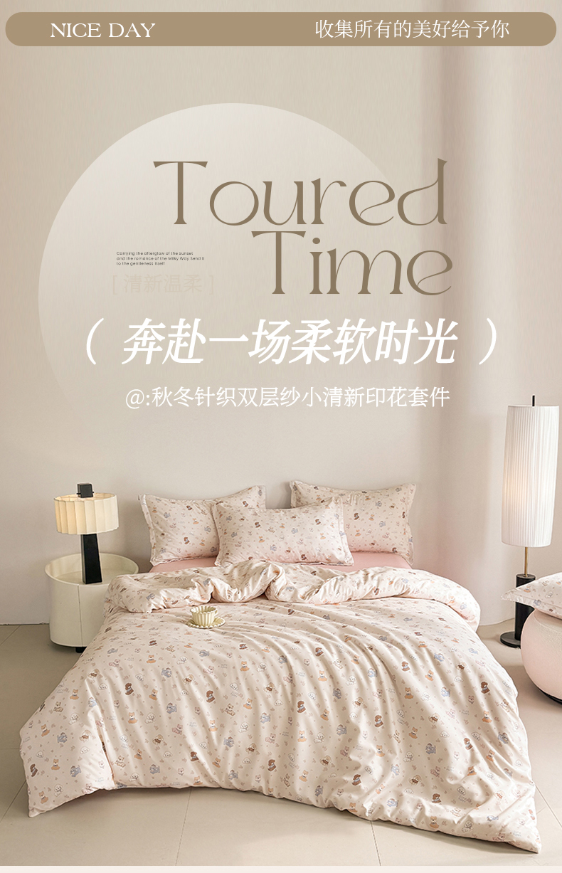 (总)壹号库 2025秋冬新款针织双层纱小清新印花四件套(专版花型),安琪拉兔,半亩花田,蝶舞,丁香紫,芳华,海盐可可,花间,花漾年华,里德油画,罗格先生,茉莉青提,奶兰芝士,奶油波点,南瓜派,桃金娘,田园诗,甜心,蔚兰,西高地,闲趣花开,樱桃甜心,崽崽,枕边童话,栗子蛋糕,萌萌狗,百福,海盐拿铁,豆蔻,甜茶,蕾丝小兔,油画少女