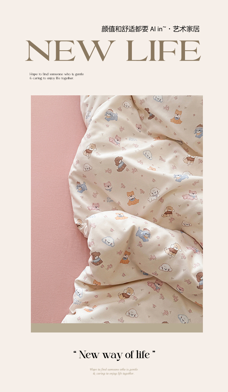 (总)壹号库家纺 2025新款A类提花有氧彩竺绵夏被四件套,白茶,百福(兰),狗狗日记,花谷,奶兰芝士,奶油星辰,西高地,芝士奶酪