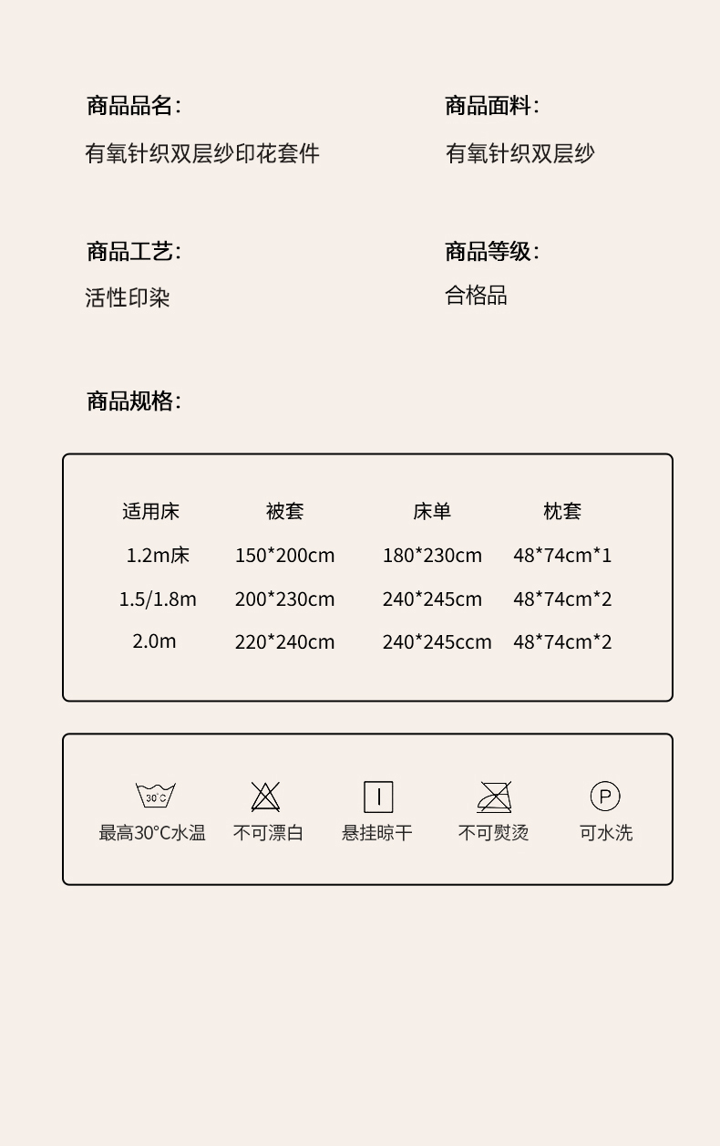 商品名称:(总)壹号库家纺 2025新款秋冬加厚款A类有氧双层纱针织绵亲肤小清新印花三件套四件套(专版花型)